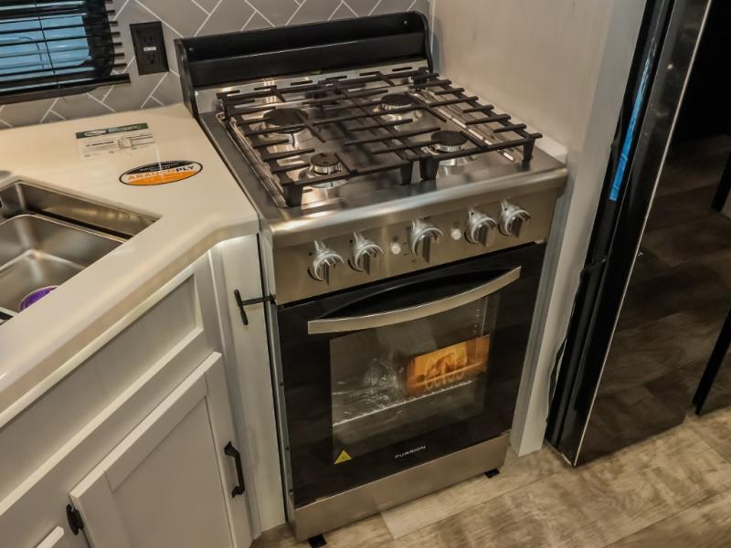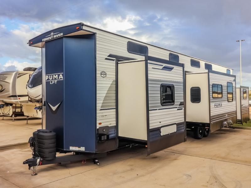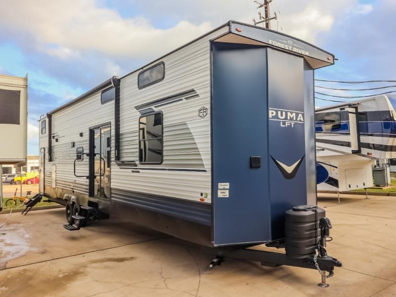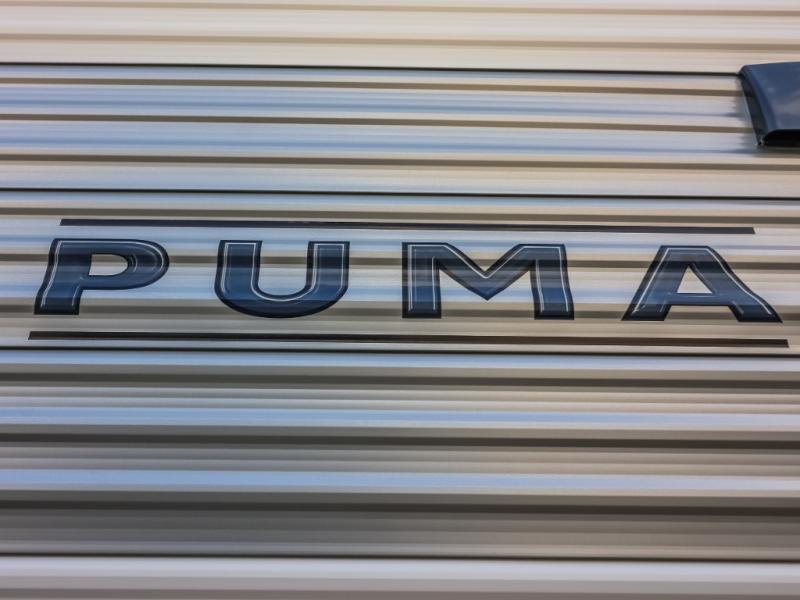 Each Puma Destination trailer by Palomino is designed to give you unforgettable getaways to the destination of your choice! The required Value Shopper Loft Package includes Congoleum designer linoleum, night roller shades, LED lighting, and a 24" stainless steel oven with a four burner stove so you can make meals just like you would at home. The tankless water heater is another feature you won't want to camp without, and there is WiFi prep, solar prep, plus optional washer and dryer prep for the option to further customize your trailer. An outside shower is included with the required Loft Package, along with two exterior speakers, solid surface countertops, four stabilizer jacks, and more!