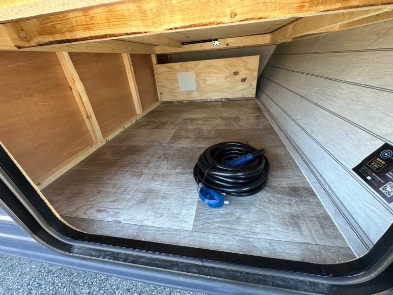 Easily hit the road with this trailer in tow! You can camp locally or far away, the choice is yours. There is an RV queen bed up front to sleep on and the dinette offers sleeping space for one more, the galley kitchen provides a two-burner cooktop and a 12V refrigerator to make meals, plus the bathroom offers a tub and toilet so you can skip the public facilities. And the entry closet can be used for your daily clothes, coats or even extra space for dry goods and such.