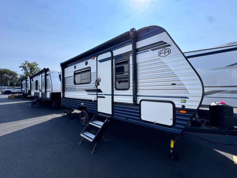 With any Puma Ultra Lite travel trailer by Palomino, you will experience a lighter weight RV that is eco-friendly and offers great fuel efficiency with maximum towability. The exterior offers an AlphaPly roofing membrane and a Darco wrapped underbelly for durability and years of use, a power tongue jack for easy setup, a Super Lube axle, a front diamond plate to protect against road debris, front and rear stabilizer jacks, plus solar and WiFi prep. Inside, there is LED ceiling lights, Beauflor linoleum for durability and easy cleanup, a decorative kitchen backsplash, contemporary hardware, light and bath fixtures for style, a divided silverware drawer for organization, and a 78" interior height.