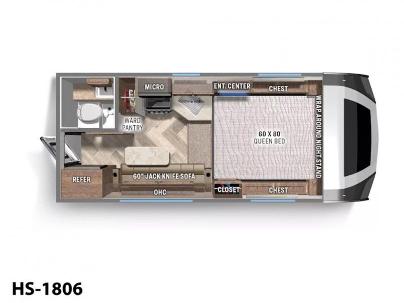 Your 3/4 ton truck has met its match with this hard side truck camper. You can sleep three people each night thanks to the queen bed up front and the 60" jackknife sofa with a table. There is a wardrobe/pantry, a closet, plus a wrap-around nightstand that will provide you with tons of storage space. Since this model includes a two burner cooktop, you won't have to cook over an open fire each night, and check out the wet bath leaving you clean and fresh!
