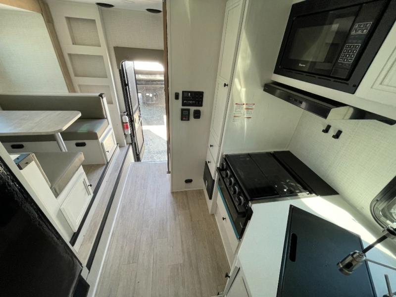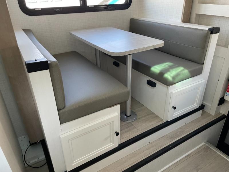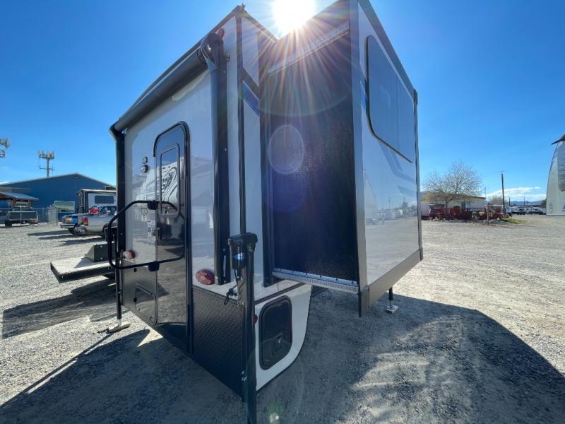 Your fishing trips just got sweeter in this truck camper perfect for your 3/4 ton truck with a 6' 6" bed up to an 8' bed. The booth dinette slide will provide more interior space, and you can sleep one overnight guest here or two little ones. You are sure to get a great night's rest on the front queen bed, and there is a TV here to watch your favorite movies in bed. In the morning, everyone can take turns cleaning up in the wet bath while the chef of the group prepares breakfast on the two burner cooktop. This model also includes a wardrobe/pantry, a closet by the bed, plus a wrap-around nightstand for all your things.