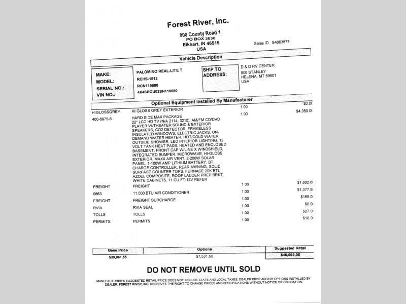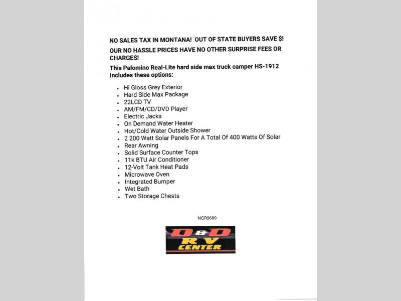 This Palomino Real-Lite hard side max truck camper HS-1912 includes these options: