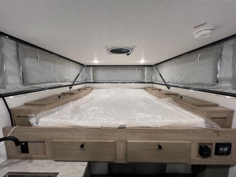 With any Real-Lite truck camper by Palomino you can sure you are getting a durable camper made to last thanks to the alpha super flex membrane roof, the high density block foam insulation, and the hi-gloss exterior fiberglass. Whether you choose a soft side, hard side, or hard side max model, you won't be left wanting. LED interior lighting and mortise and tenon hard wood cabinets will make your camper feel more like home, and the Congoleum flooring is made to last through years of adventures. These campers include black Rieco Titan convertible jacks (electric on Max models), an exterior battery charging station, plus solar prep if you plan to go off-grid.