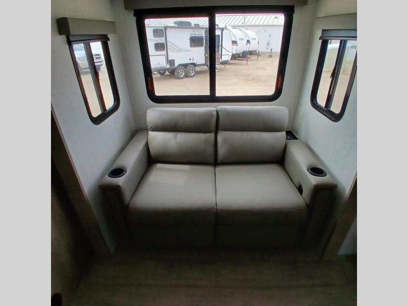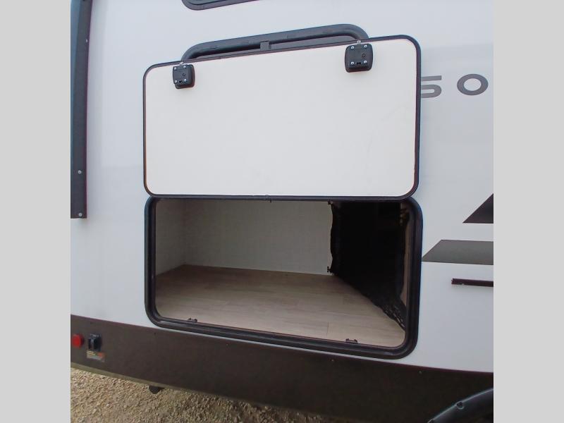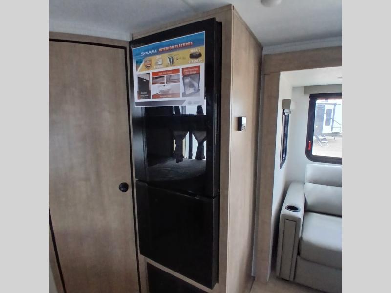 Each SolAire travel trailer by Palomino features a white gel coat exterior and an aluminum superstructure frame for lightweight towing. You will love having a power tongue jack for easy set up, plus slam latch baggage doors with magnets to make unloading easier than ever. There is also a power awning with LED lights and aluminum wheels included on the exterior. Each SolAire is constructed to last with Azdel composite, a fully laminated rear wall and roof, plus a fully enclosed and heated underbelly. The interior includes roller shades and kitchen backsplash, USB ports to keep your electronics charged, a Bluetooth stereo with speakers, and many more stand-out features!