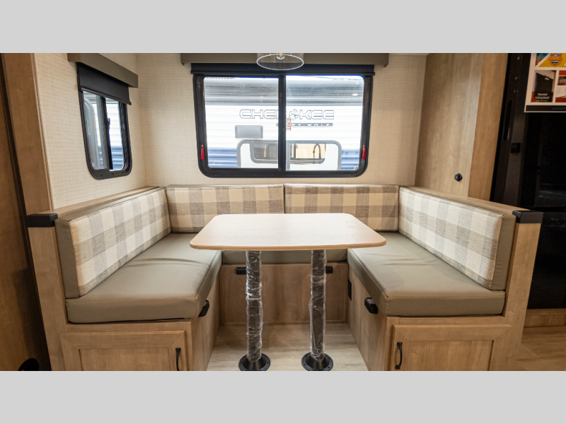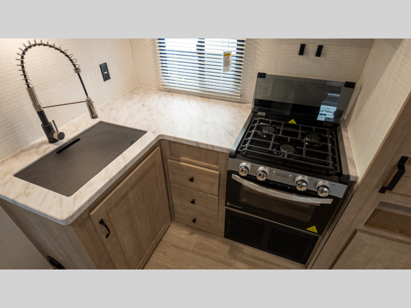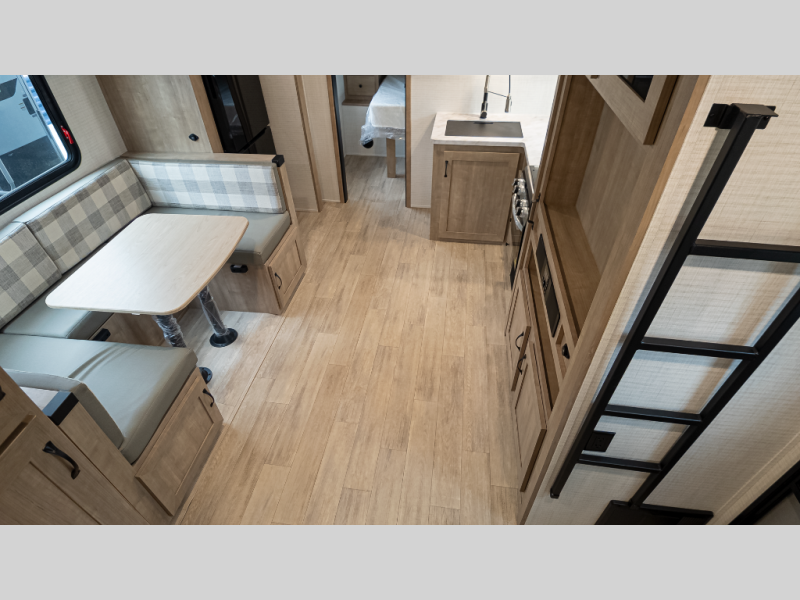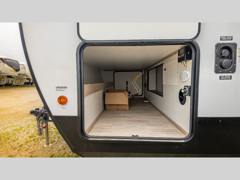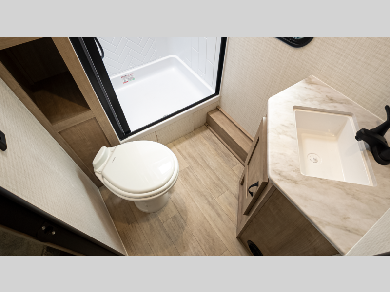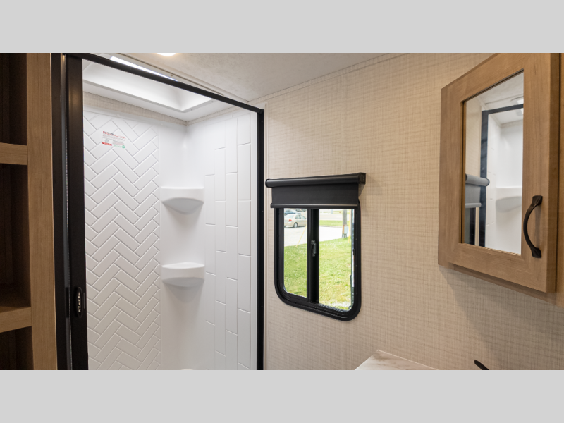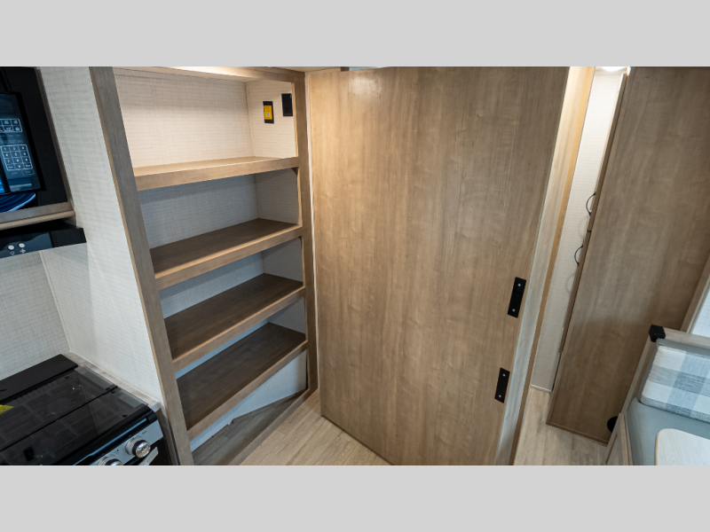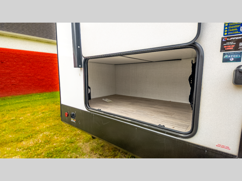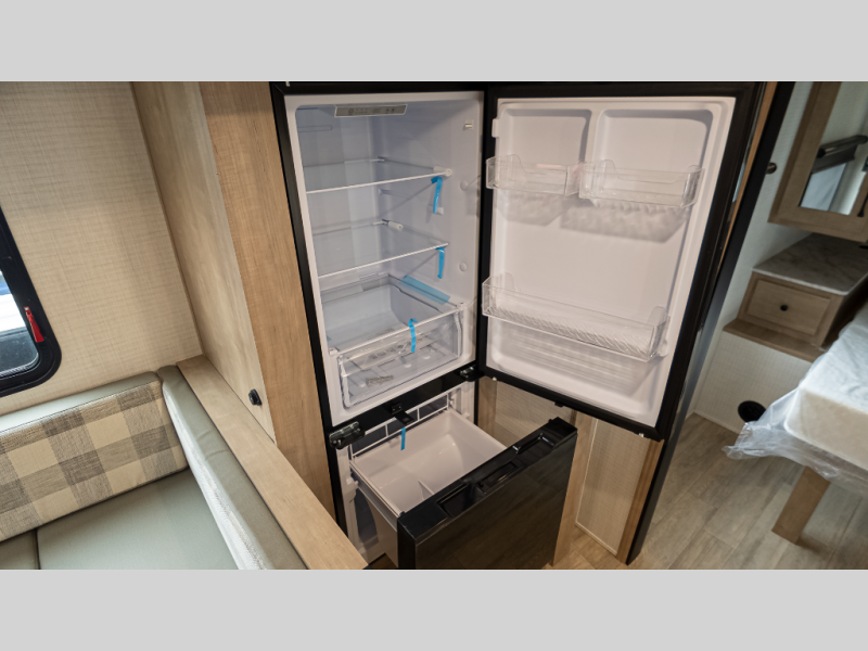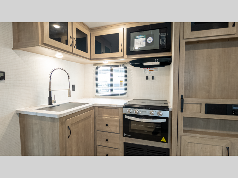 Your friends and family will love camping with you in this trailer that offers sleeping space for eight with the queen bed, the double-size bunks and the U-shaped dinette once it is easily set up for sleeping space. The cook will love the full kitchen with its cooktop, microwave, electric refrigerator plus hidden pantry behind the entertainment center. A full bath with a 30" x 36" shower will let you freshen up each day, and you'll love having your own space in the front private bedroom!