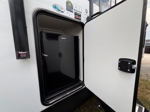 Each SolAire travel trailer by Palomino features a white gel coat exterior and an aluminum superstructure frame for lightweight towing. You will love having a power tongue jack for easy set up, plus slam latch baggage doors with magnets to make unloading easier than ever. There is also a power awning with LED lights and aluminum wheels included on the exterior. Each SolAire is constructed to last with Azdel composite, a fully laminated rear wall and roof, plus a fully enclosed and heated underbelly. The interior includes roller shades and kitchen backsplash, USB ports to keep your electronics charged, a Bluetooth stereo with speakers, and many more stand-out features!