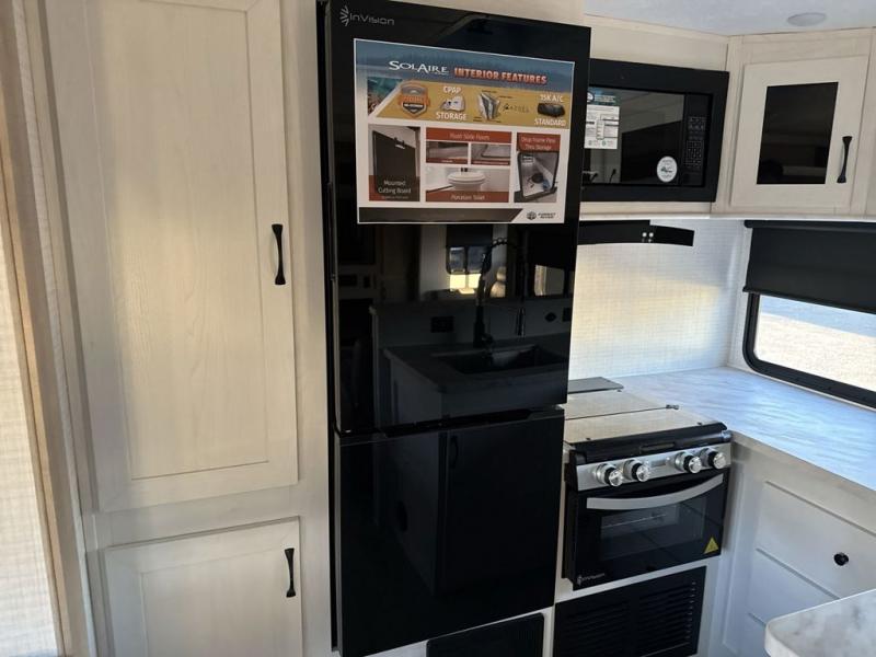 Each SolAire travel trailer by Palomino features a white gel coat exterior and an aluminum superstructure frame for lightweight towing. You will love having a power tongue jack for easy set up, plus slam latch baggage doors with magnets to make unloading easier than ever. There is also a power awning with LED lights and aluminum wheels included on the exterior. Each SolAire is constructed to last with Azdel composite, a fully laminated rear wall and roof, plus a fully enclosed and heated underbelly. The interior includes roller shades and kitchen backsplash, USB ports to keep your electronics charged, a Bluetooth stereo with speakers, and many more stand-out features!