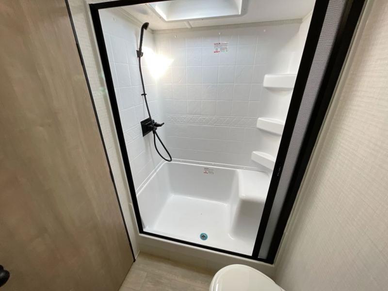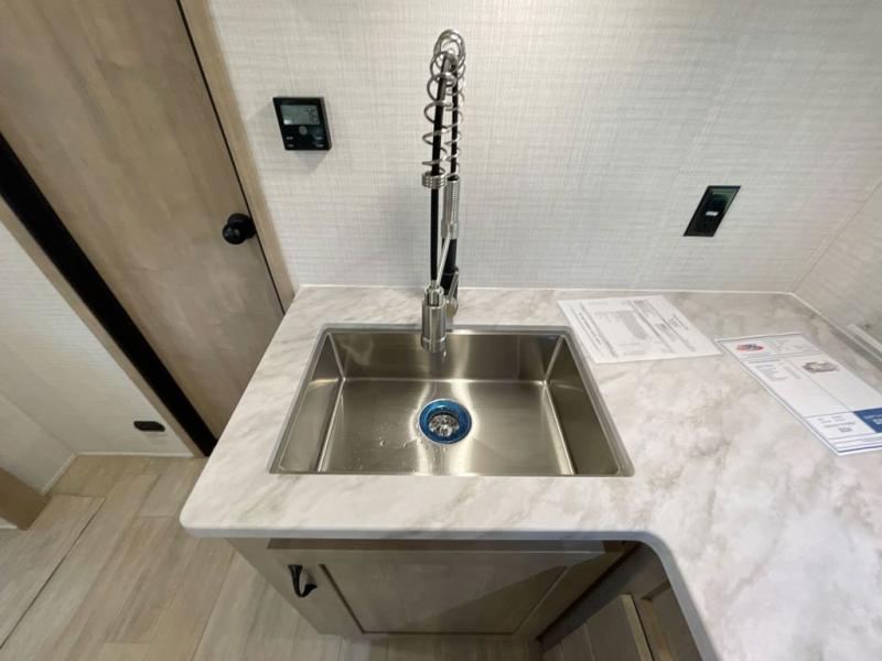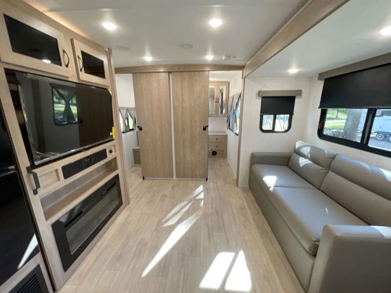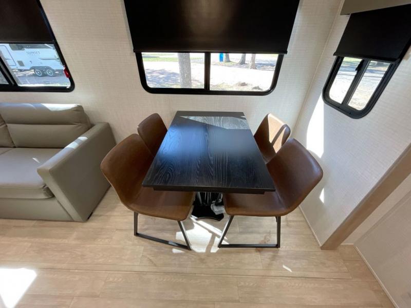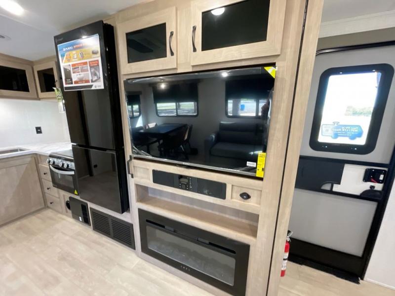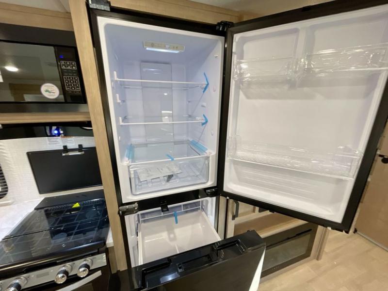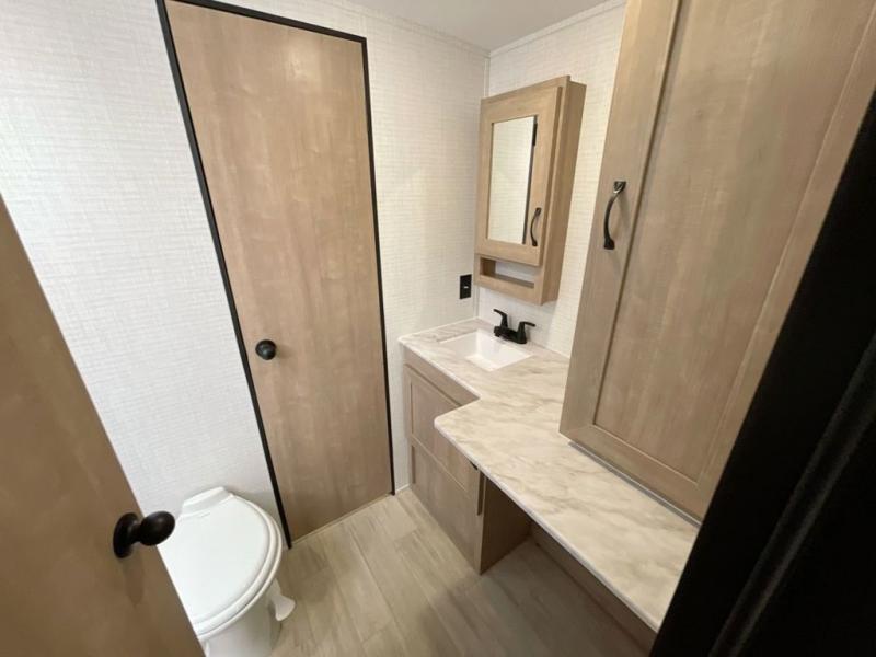 Whether you are looking for a bunkhouse, a private bedroom, or dual entry doors in your next RV, this one might just be the perfect fit with all those features! There are 45" x 72" bunk beds, each with their own wardrobe and their own private entry door, making it perfect for camping with older kids. The galley kitchen offers amenities such as a microwave, cooktop, an 11 cu. ft. refrigerator, and an L-shaped counter for preparing and serving meals. You will also find more storage, an entertainment center and a slide out sofa sleeper and booth dinette that offer more sleeping space when needed.