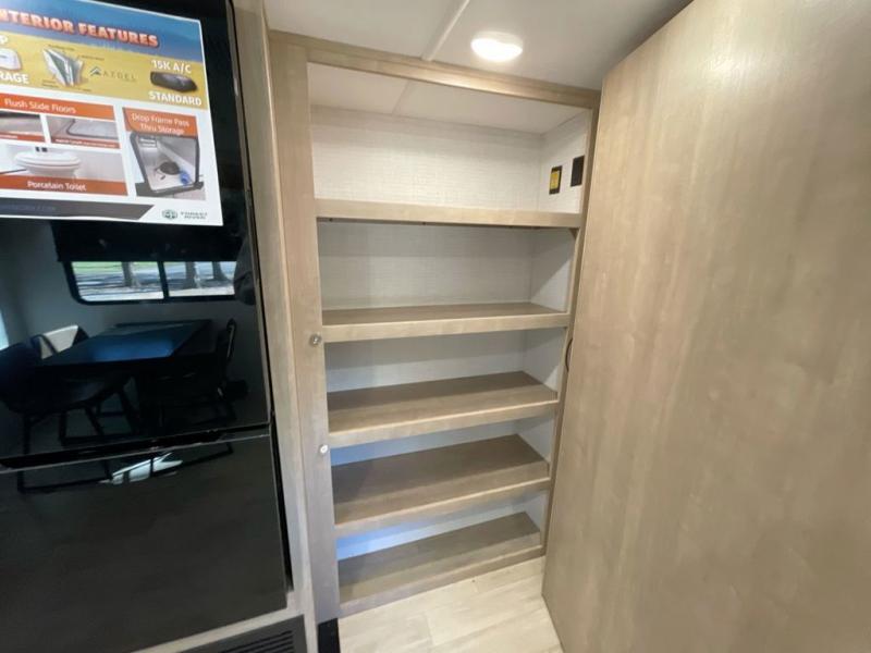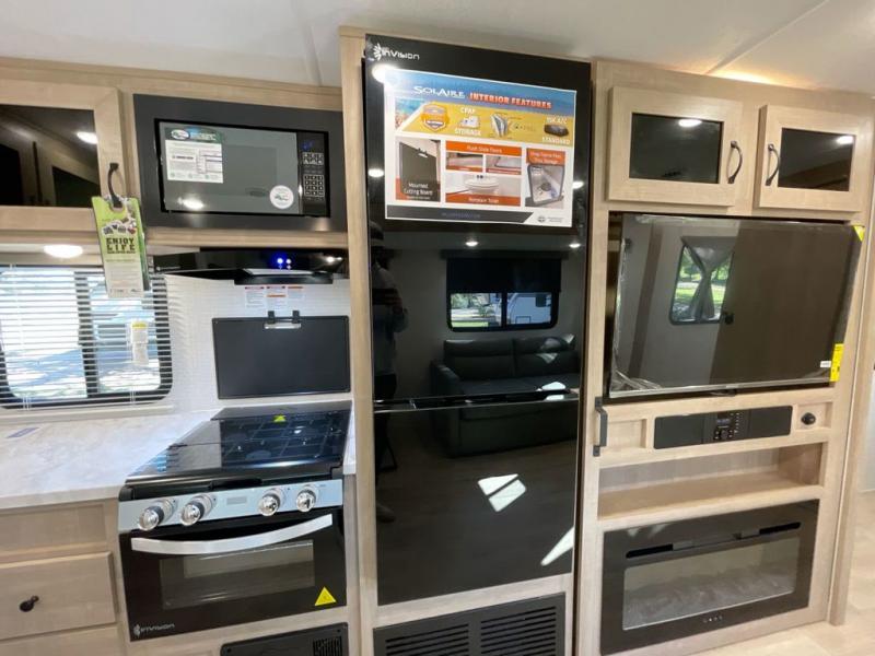 Each SolAire travel trailer by Palomino features a white gel coat exterior and an aluminum superstructure frame for lightweight towing. You will love having a power tongue jack for easy set up, plus slam latch baggage doors with magnets to make unloading easier than ever. There is also a power awning with LED lights and aluminum wheels included on the exterior. Each SolAire is constructed to last with Azdel composite, a fully laminated rear wall and roof, plus a fully enclosed and heated underbelly. The interior includes roller shades and kitchen backsplash, USB ports to keep your electronics charged, a Bluetooth stereo with speakers, and many more stand-out features!