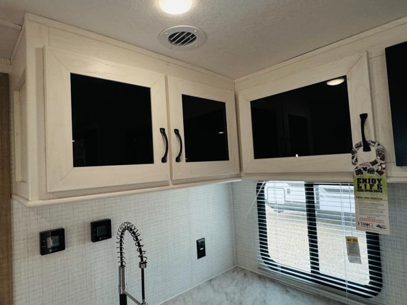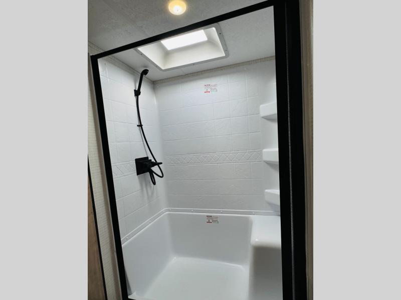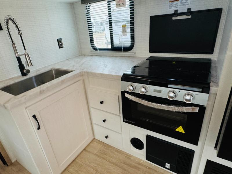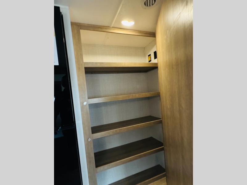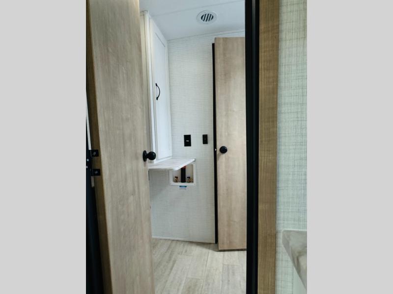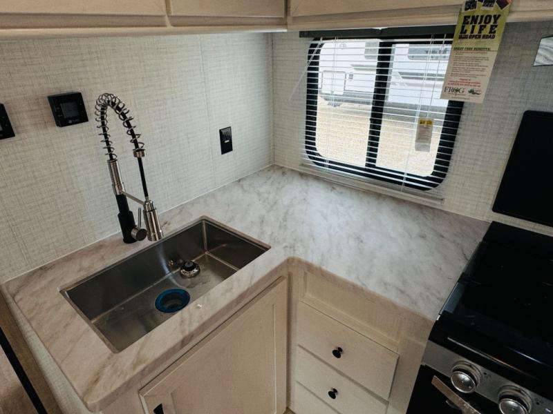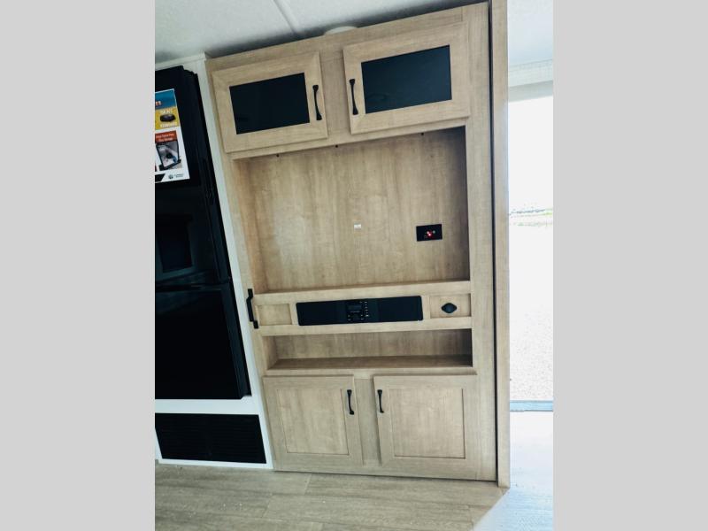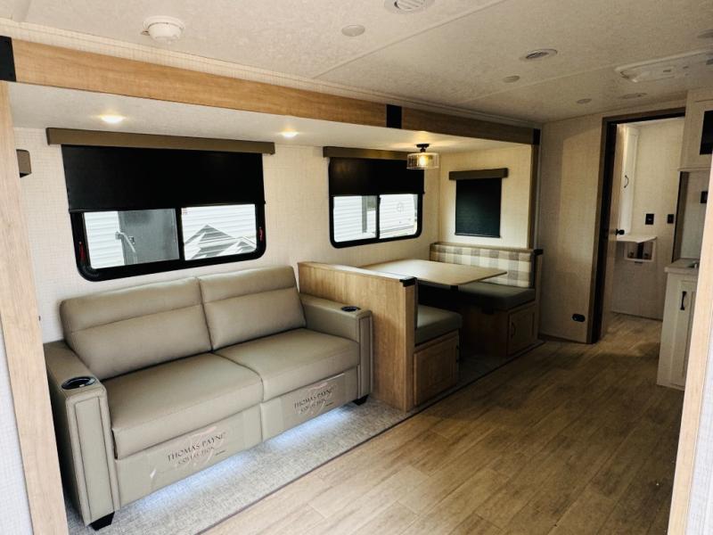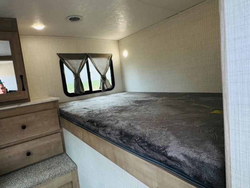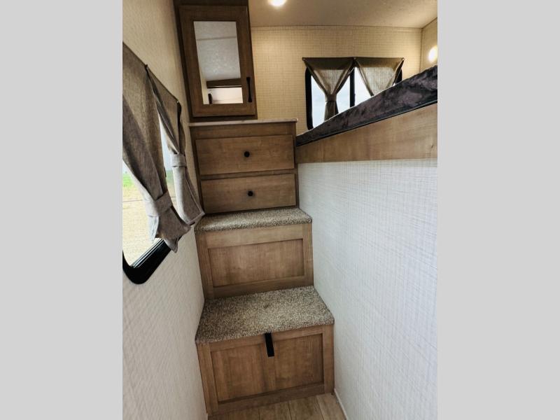 Whether you are looking for a bunkhouse, a private bedroom, or dual entry doors in your next RV, this one might just be the perfect fit with all those features! There are 45" x 72" bunk beds, each with their own wardrobe and their own private entry door, making it perfect for camping with older kids. The galley kitchen offers amenities such as a microwave, cooktop, an 11 cu. ft. refrigerator, and an L-shaped counter for preparing and serving meals. You will also find more storage, an entertainment center and a slide out sofa sleeper and booth dinette that offer more sleeping space when needed.