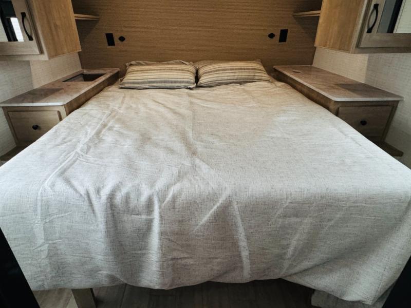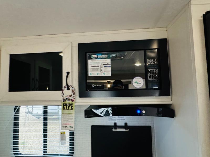 Each SolAire travel trailer by Palomino features a white gel coat exterior and an aluminum superstructure frame for lightweight towing. You will love having a power tongue jack for easy set up, plus slam latch baggage doors with magnets to make unloading easier than ever. There is also a power awning with LED lights and aluminum wheels included on the exterior. Each SolAire is constructed to last with Azdel composite, a fully laminated rear wall and roof, plus a fully enclosed and heated underbelly. The interior includes roller shades and kitchen backsplash, USB ports to keep your electronics charged, a Bluetooth stereo with speakers, and many more stand-out features!