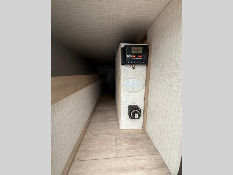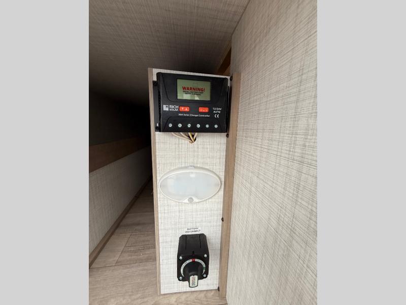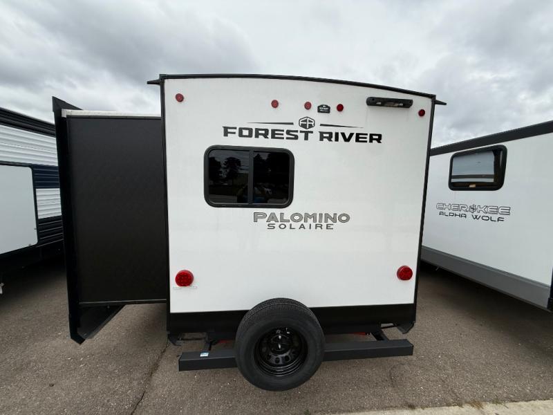 Each SolAire travel trailer by Palomino features a white gel coat exterior and an aluminum superstructure frame for lightweight towing. You will love having a power tongue jack for easy set up, plus slam latch baggage doors with magnets to make unloading easier than ever. There is also a power awning with LED lights and aluminum wheels included on the exterior. Each SolAire is constructed to last with Azdel composite, a fully laminated rear wall and roof, plus a fully enclosed and heated underbelly. The interior includes roller shades and kitchen backsplash, USB ports to keep your electronics charged, a Bluetooth stereo with speakers, and many more stand-out features!