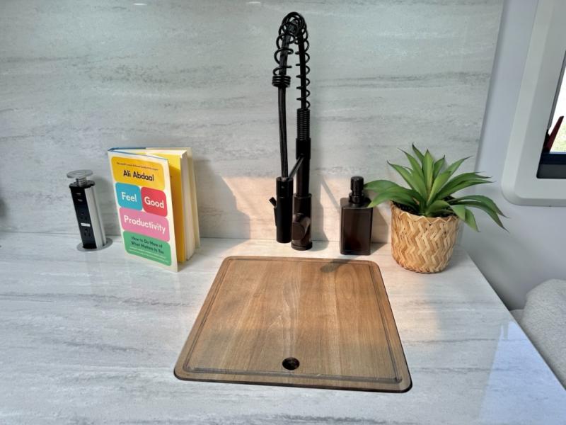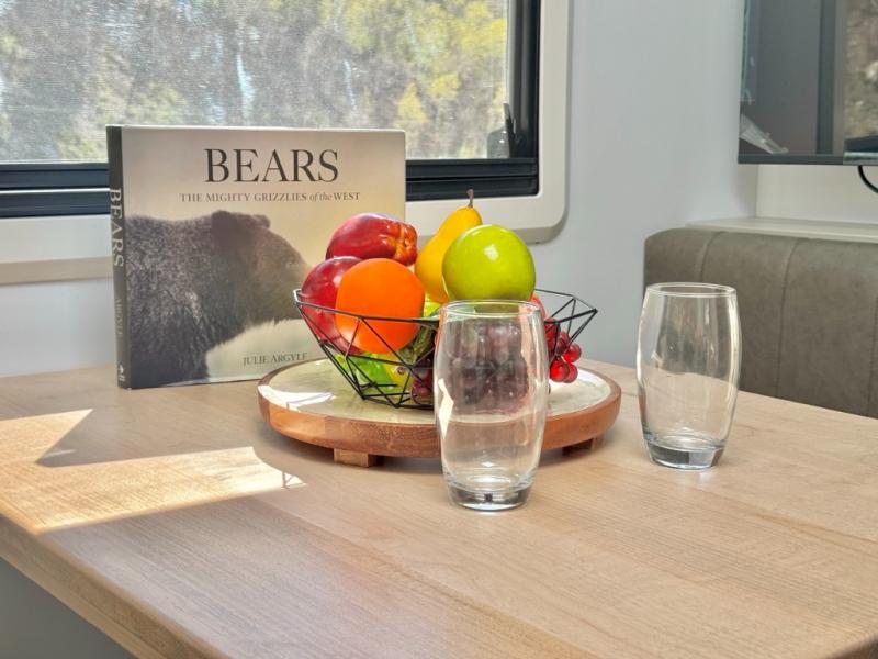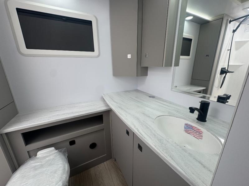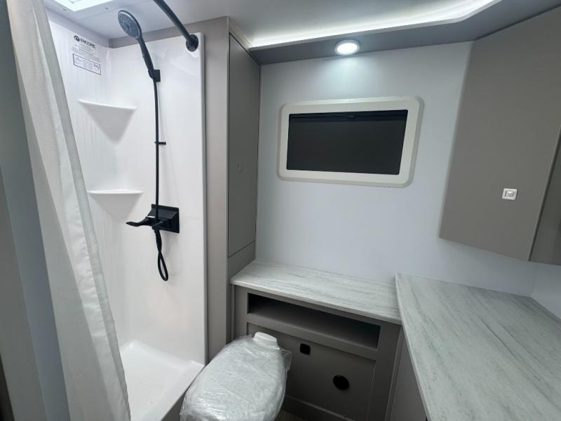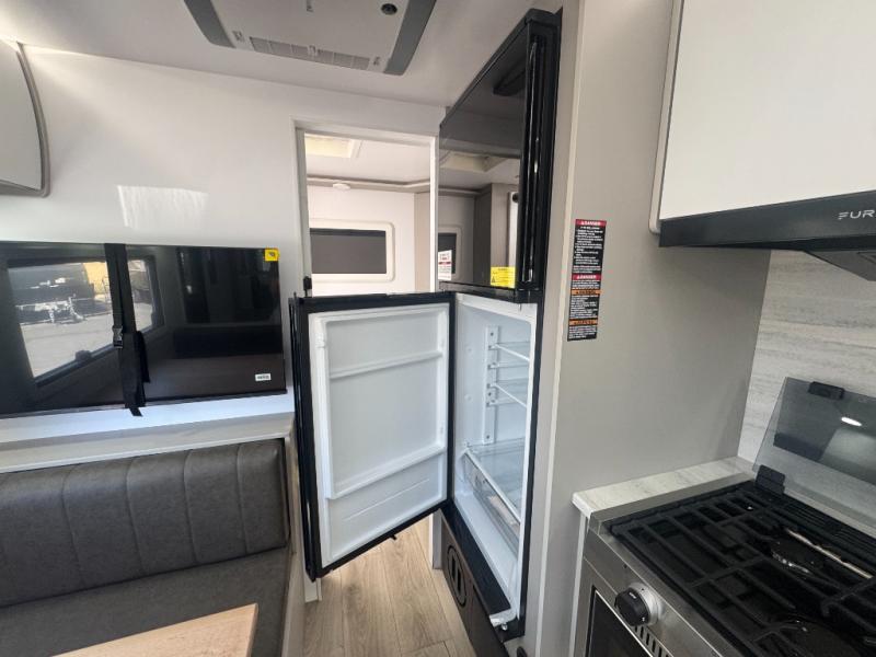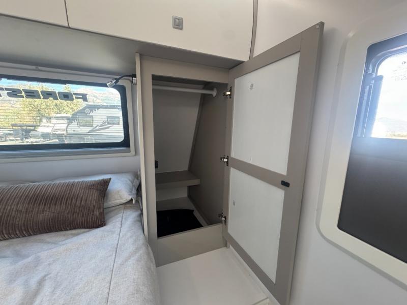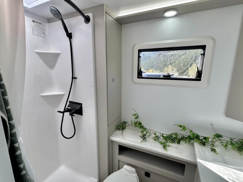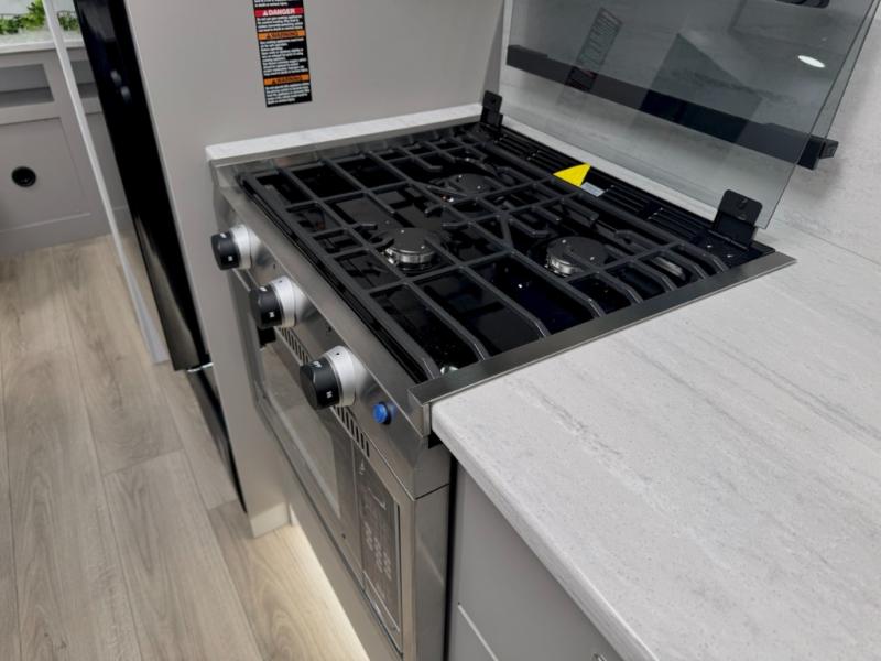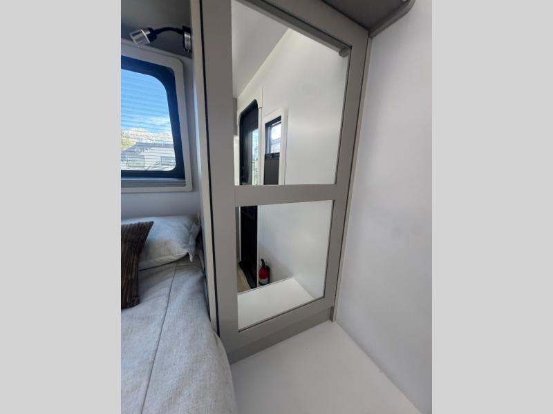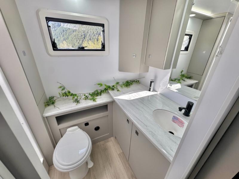 The spacious and modern interior includes solid wood cabinetry, luxury finishes, a convertible dinette bed, and a fully equipped kitchen with a 3-burner cooktop and convection microwave. Climate control is handled by Suburban or upgraded Truma systems, while connectivity and comfort remain top-tier whether you're boondocking in the desert or parked in the mountains.