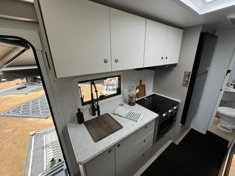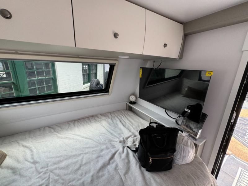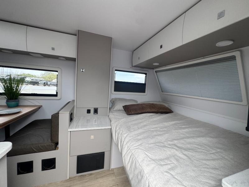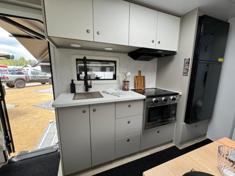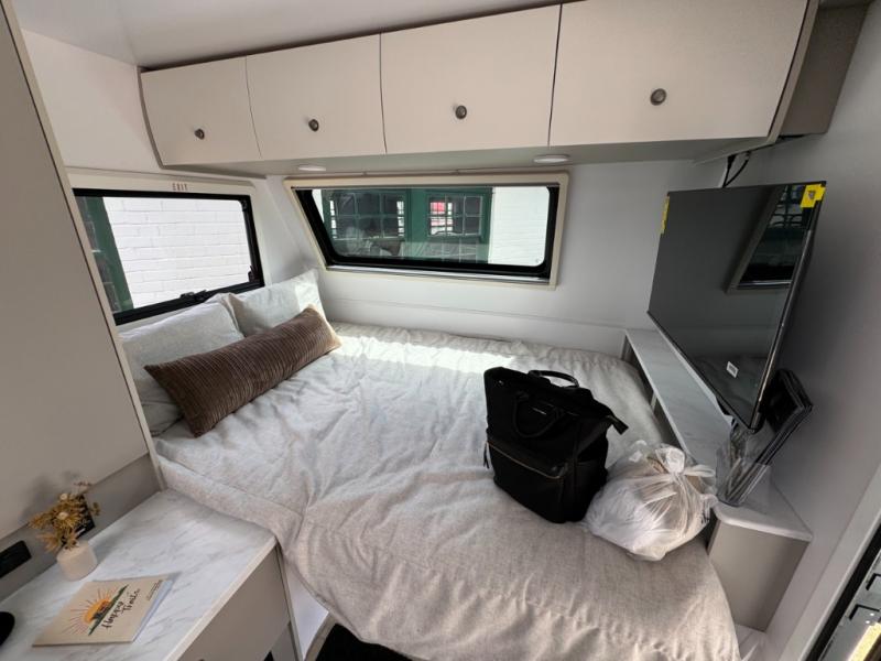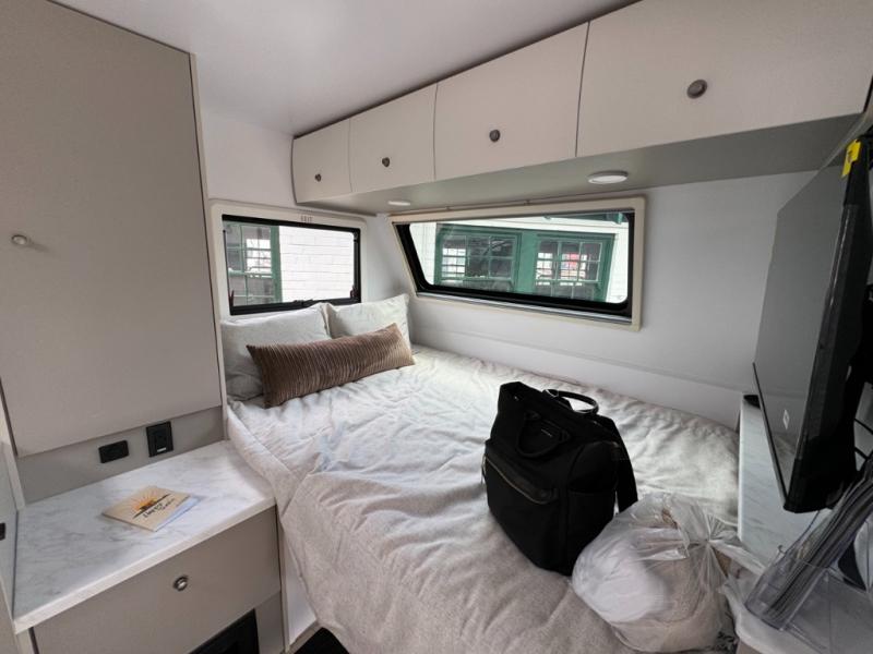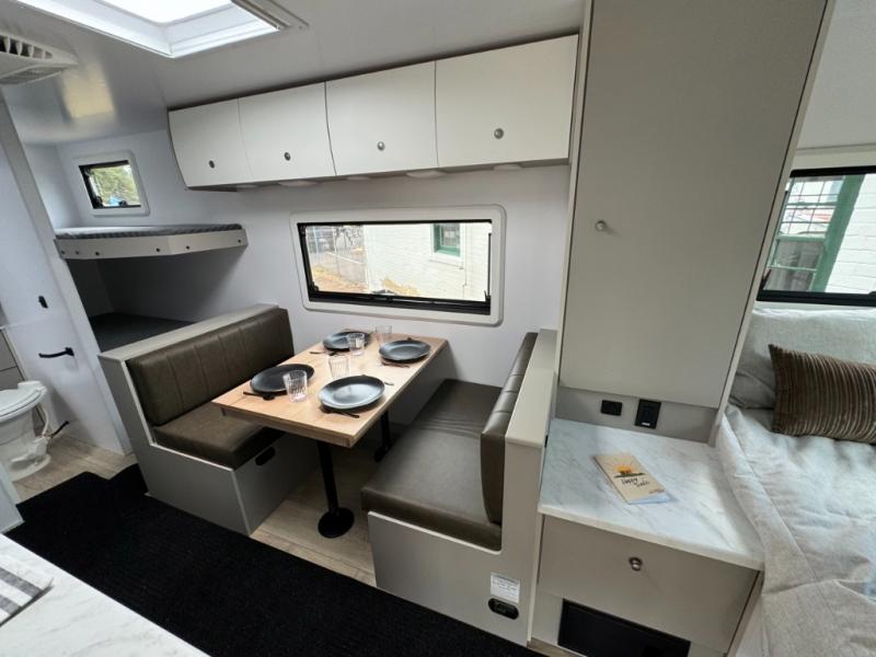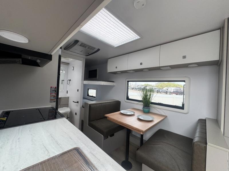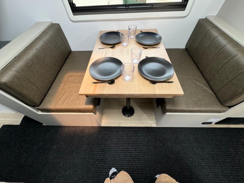 With any Pause Reboot Edition travel trailer by Palomino, you'll enjoy a rugged exterior that features a puncture resistant underbelly and a MORryde Huck-Rivet aluminum frame for added durability. There is also a seamless laminated fiberglass roof and laminated composite fully insulated walls to help extend your camping season. A Victron Solar System features 200 watts of solar power, a 270AH lithium battery, a 3,000W inverter charger, and a 50A solar charger for off-grid capabilities. If you're needing more solar power, there are two optional upgrades that can give you up to 800 watts of power, depending on the upgrade you choose. Additional exterior features include a roof ladder, a Carefree legless awning, and a Voyager rear view camera for easy maneuvering in and out of campsites. Inside, you'll enjoy wrapped solid wood cabinets, Therma Foiled countertops, designer Carefree linoleum, and Piuma dual pane acrylic windows with an integrated blind and screen.