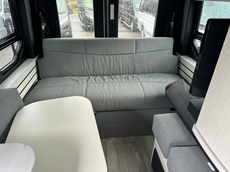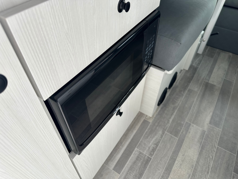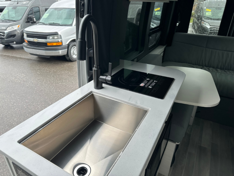 Plan to see the country in this Class B gas motorhome that includes everything you need while away from home. The power sofa with memory foam cushions will provide a great night's rest after traveling all day and the convenient wet bath with a handheld shower will allow you to clean up each morning. Prepare breakfast on the one burner induction stove top and you'll also find a microwave oven for quick meals. Food for the week can go in the 12V 3.2 cu.ft refrigerator/freezer and the overhead compartments can hold all the snacks. This model also includes a Lagun table mount system with 360 degree swivel top so you can enjoy coffee with your loved one.