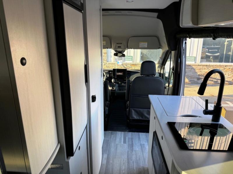 Plan to see the country in this Class B gas motorhome that includes everything you need while away from home. The power sofa with memory foam cushions will provide a great night's rest after traveling all day and the convenient wet bath with a handheld shower will allow you to clean up each morning. Prepare breakfast on the one burner induction stove top and you'll also find a microwave oven for quick meals. Food for the week can go in the 12V 3.2 cu.ft refrigerator/freezer and the overhead compartments can hold all the snacks. This model also includes a Lagun table mount system with 360 degree swivel top so you can enjoy coffee with your loved one.