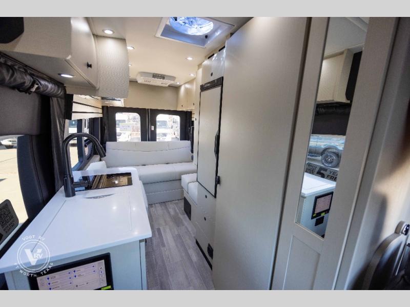 Plan to see the country in this Class B gas motorhome that includes everything you need while away from home. The power sofa with memory foam cushions will provide a great night's rest after traveling all day and the convenient wet bath with a handheld shower will allow you to clean up each morning. Prepare breakfast on the one burner induction stove top and you'll also find a microwave oven for quick meals. Food for the week can go in the 12V 3.2 cu.ft refrigerator/freezer and the overhead compartments can hold all the snacks. This model also includes a Lagun table mount system with 360 degree swivel top so you can enjoy coffee with your loved one.