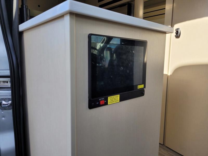 This 2.2 Ontour model is similar to model 2.0, but with a larger refrigerator, and more storage space in the bath. The rear power sofa converts to a 68" x 76" queen-sized bed with memory foam cushions for all-around comfort and the wet bath allows you to clean up each day. There is also a vanity with storage, a sink, and a Corian countertop in the bath for added convenience. Prepare meals either on the one burner induction stove top or in the microwave oven and clean up will be a breeze with a stainless steel sink that includes a high-arc faucet.
