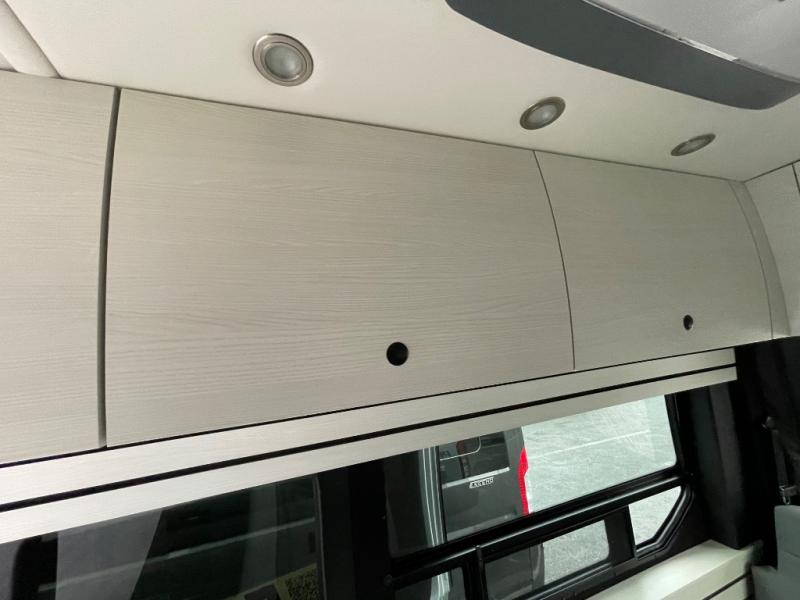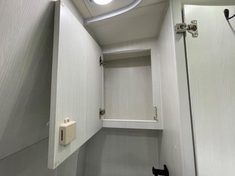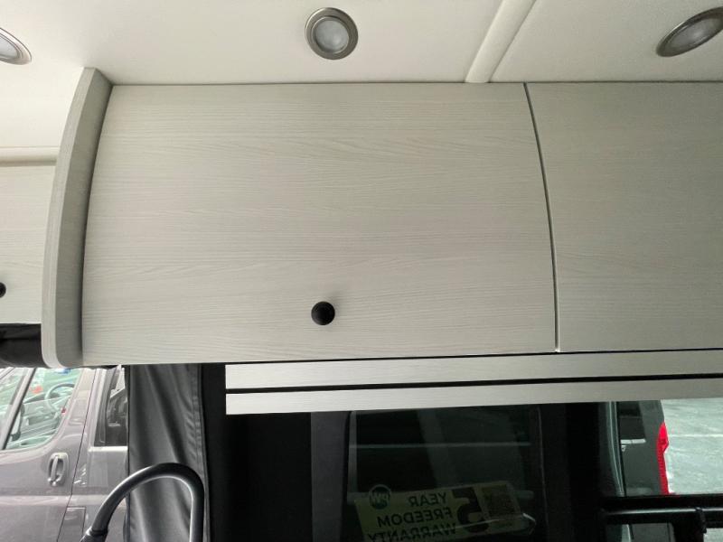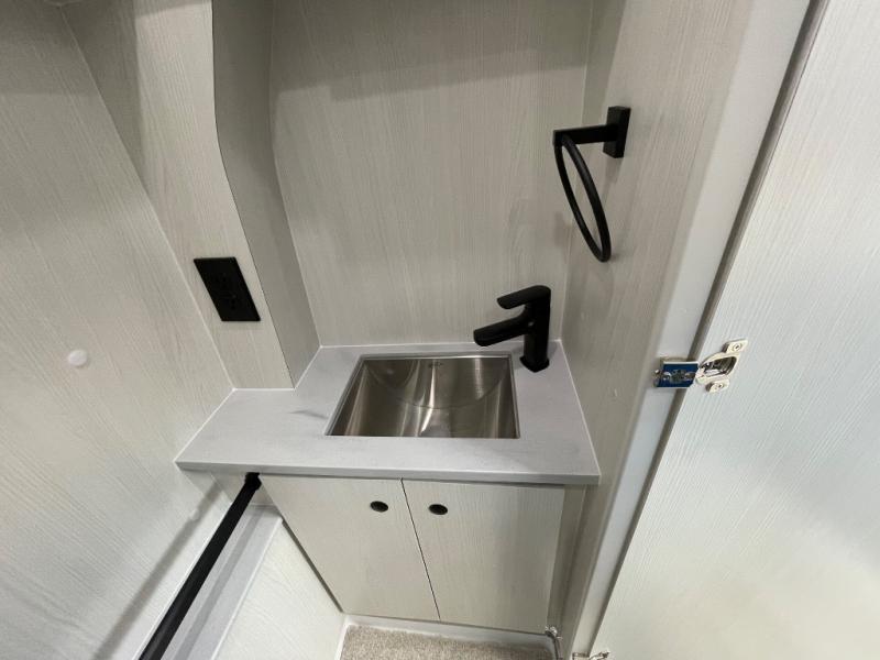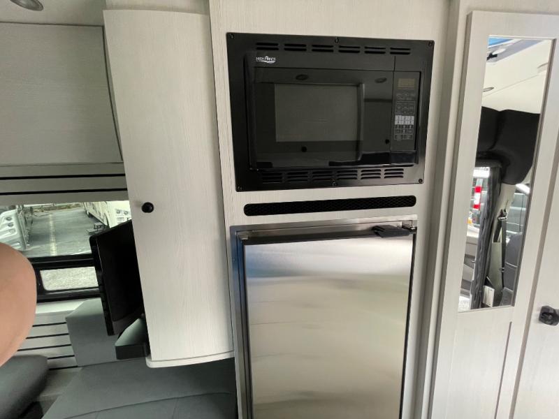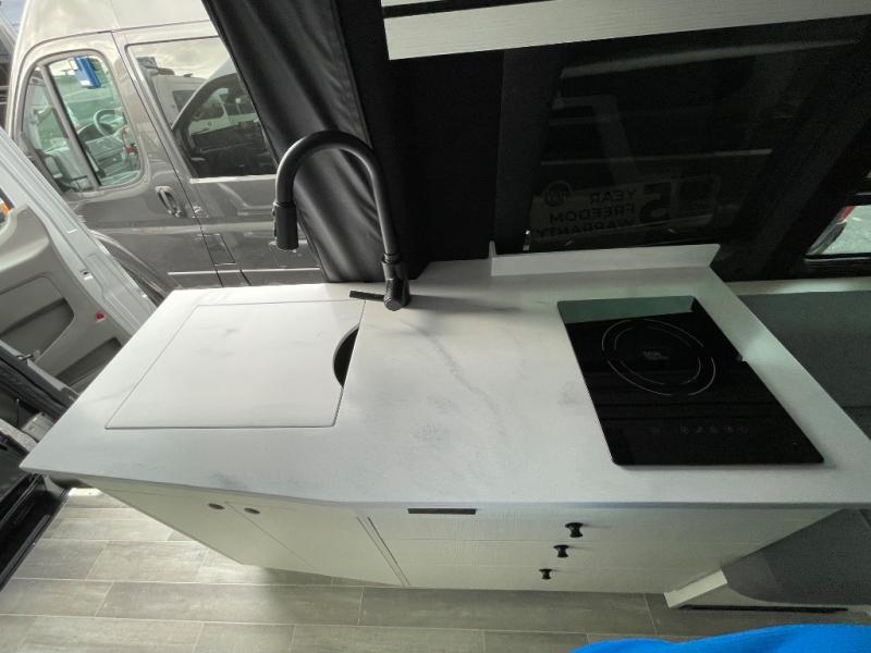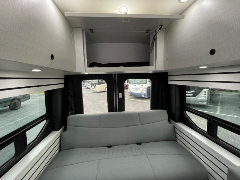 This 2.2 Ontour model is similar to model 2.0, but with a larger refrigerator, and more storage space in the bath. The rear power sofa converts to a 68" x 76" queen-sized bed with memory foam cushions for all-around comfort and the wet bath allows you to clean up each day. There is also a vanity with storage, a sink, and a Corian countertop in the bath for added convenience. Prepare meals either on the one burner induction stove top or in the microwave oven and clean up will be a breeze with a stainless steel sink that includes a high-arc faucet.