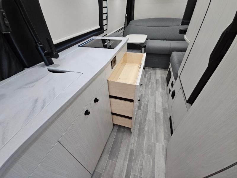 These Pleasure-Way Plateau Class B diesel motorhomes have been designed with comfort and convenience to accommodate a wide range of lifestyles! They are powered by a Mercedes Benz Sprinter 3500 van chassis with high-performing, fast-charging, and maintenance-free Eco-Ion Earth Smart dual 300Ah lithium batteries. The dual 10 inch touchscreen control panels allows you to adjust the climate, manage battery usage, monitor the solar panel charge volts, and set, start, or stop the automatic generator. Another feature is the Truma AquaGo Comfort Plus water heater that features a 60,000 BTU stepless burner, a recirculating water line, and a mixing vessel to deliver hot water on demand without temperature spikes. Come see what all the fuss is about today!