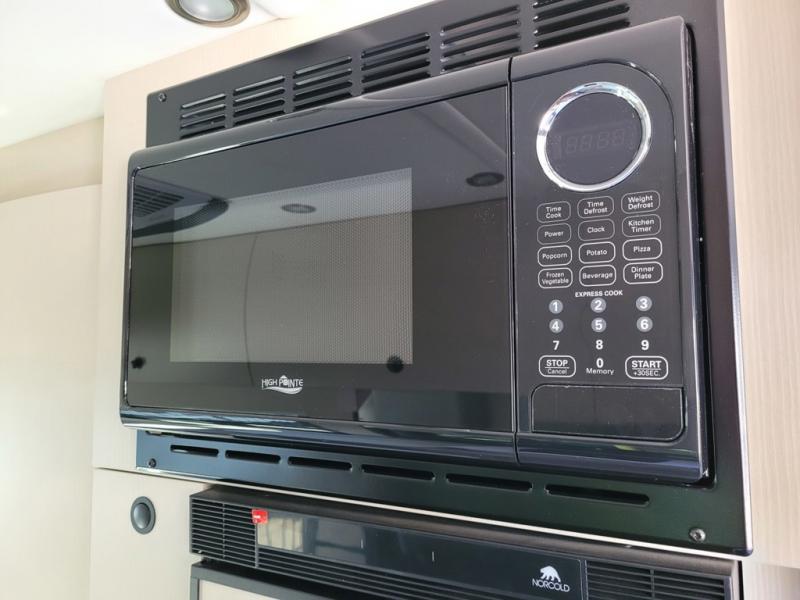 This Plateau Class B diesel motorhome features two dining locations for you to enjoy your delicious meals at thanks to the innovative Lagun table. There is also an array of storage options between the overhead cabinets, the soft-close drawers, and the pull-out pantry. If you have to get a little bit of work done while on the road, then you will love the front lounge workstation with a 120V power outlet, USB charging ports, and an extended Corian countertop with a privacy shade and storage cabinets too. The microwave makes it easy for you to pop a bag of popcorn and enjoy eating it while you relax on the power sofa with memory foam sofa cushions!