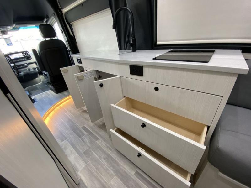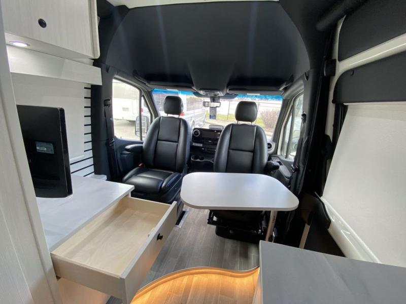 These Pleasure-Way Plateau Class B diesel motorhomes have been designed with comfort and convenience to accommodate a wide range of lifestyles! They are powered by a Mercedes Benz Sprinter 3500 van chassis with high-performing, fast-charging, and maintenance-free Eco-Ion Earth Smart dual 300Ah lithium batteries. The dual 10 inch touchscreen control panels allows you to adjust the climate, manage battery usage, monitor the solar panel charge volts, and set, start, or stop the automatic generator. Another feature is the Truma AquaGo Comfort Plus water heater that features a 60,000 BTU stepless burner, a recirculating water line, and a mixing vessel to deliver hot water on demand without temperature spikes. Come see what all the fuss is about today!
