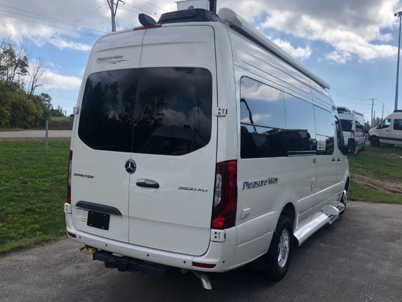 These Pleasure-Way Plateau Class B diesel motorhomes have been designed with comfort and convenience to accommodate a wide range of lifestyles! They are powered by a Mercedes Benz Sprinter 3500 van chassis with high-performing, fast-charging, and maintenance-free Eco-Ion Earth Smart dual 300Ah lithium batteries. The dual 10 inch touchscreen control panels allows you to adjust the climate, manage battery usage, monitor the solar panel charge volts, and set, start, or stop the automatic generator. Another feature is the Truma AquaGo Comfort Plus water heater that features a 60,000 BTU stepless burner, a recirculating water line, and a mixing vessel to deliver hot water on demand without temperature spikes. Come see what all the fuss is about today!