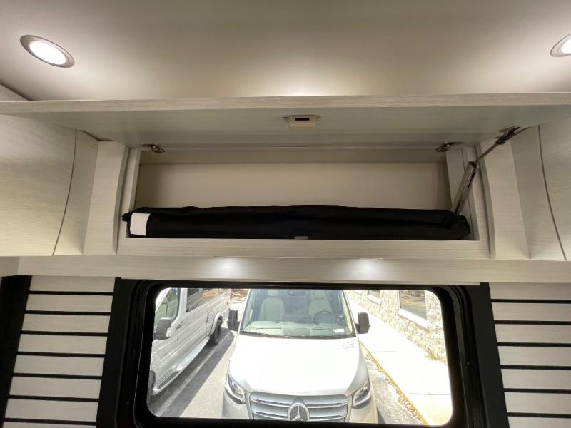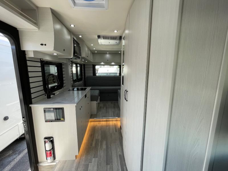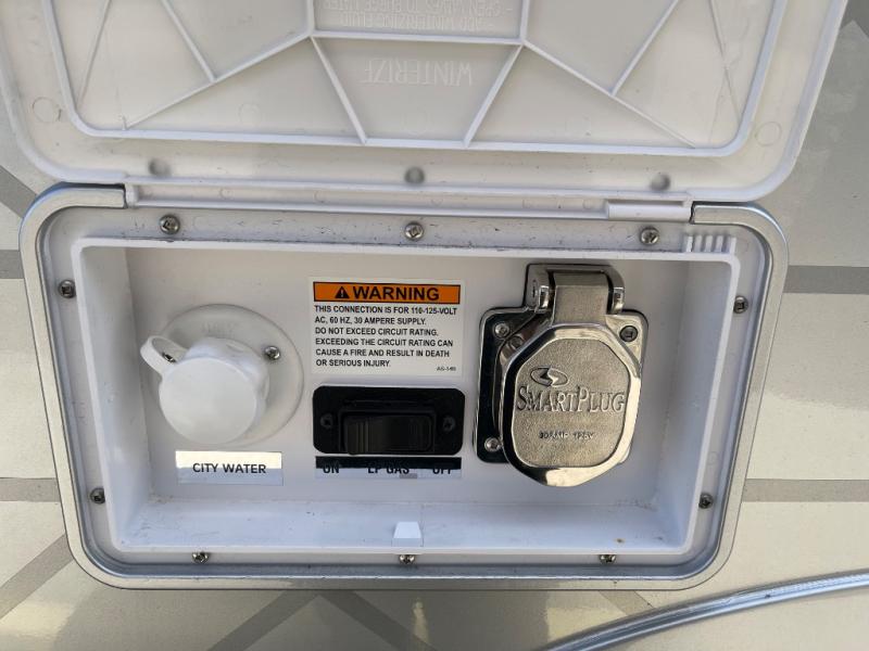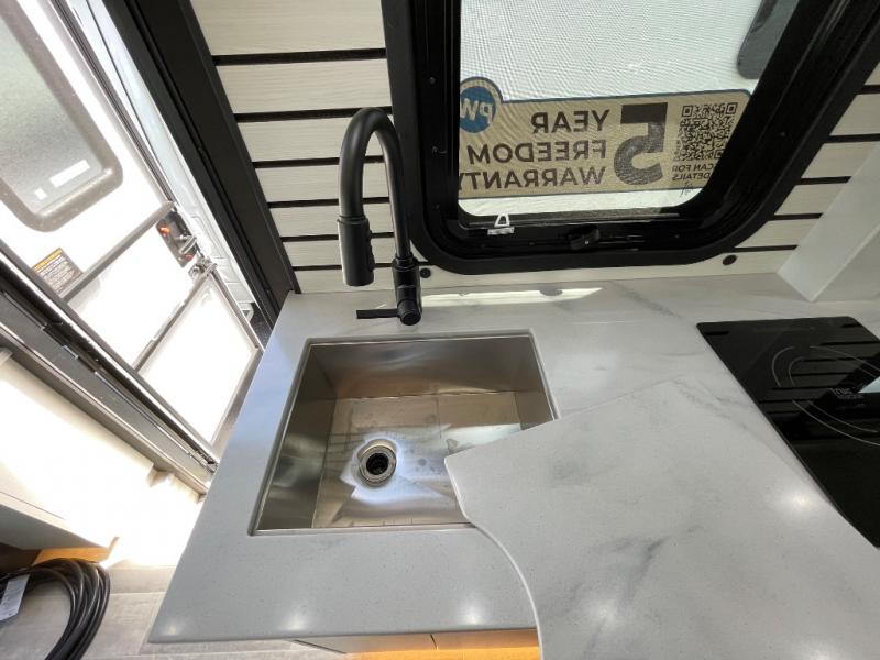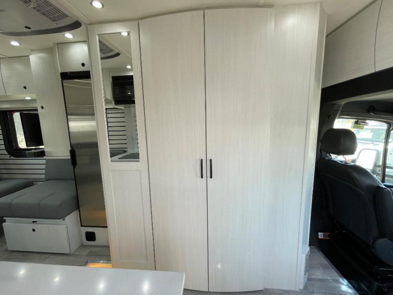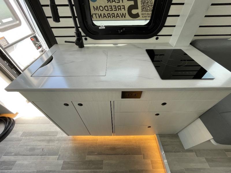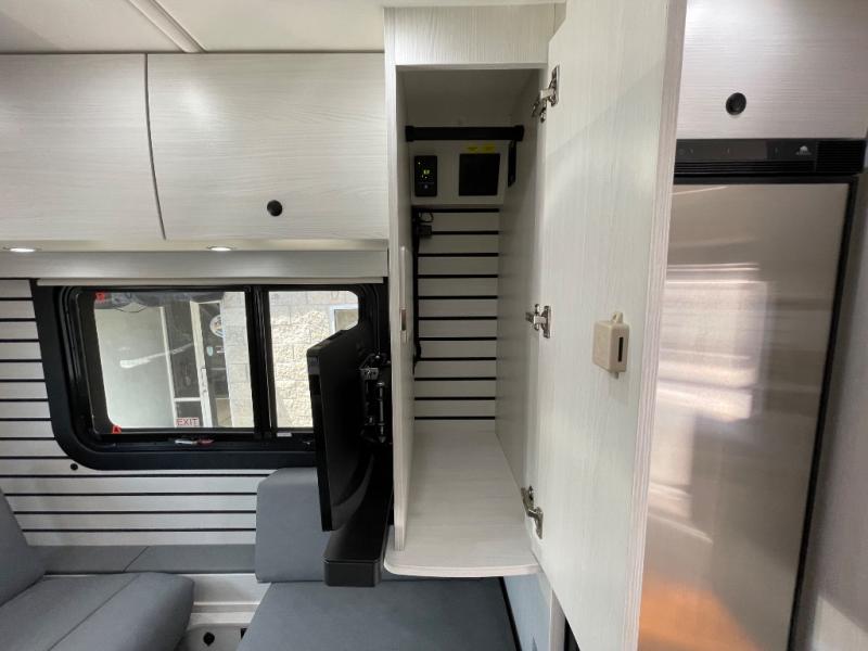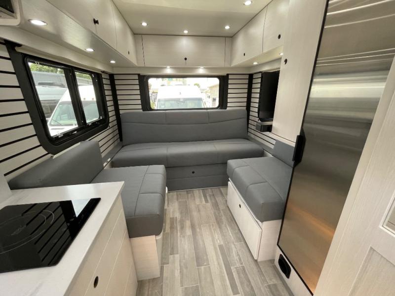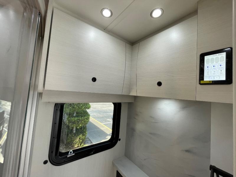 You and your spouse or friend will love touring the country in this comfortable motorhome! After a long day of traveling, freshen up in the full bathroom with the 32" radius shower that is Corian-lined, has a handheld showerhead, a large vanity with storage shelves, and even a towel rack. Prepare your best home cooked meals while on the road with the one burner induction stove, microwave, and 12V 5.3 cu. ft. Norcold refrigerator. Your meals can be enjoyed at the rear electric sofa with Lagun table, and it also transforms into a 75" x 74" queen bed for you to get a good night's rest each night. You even have an inflatable air bed that is fitted for the cab so an extra guest or two can tag along. If mother nature rains on your parade then you can watch your favorite movies on the 24" Smart LED TV with swing out mount and a Winegard Rayzar automatic HDTV antenna!