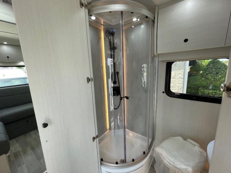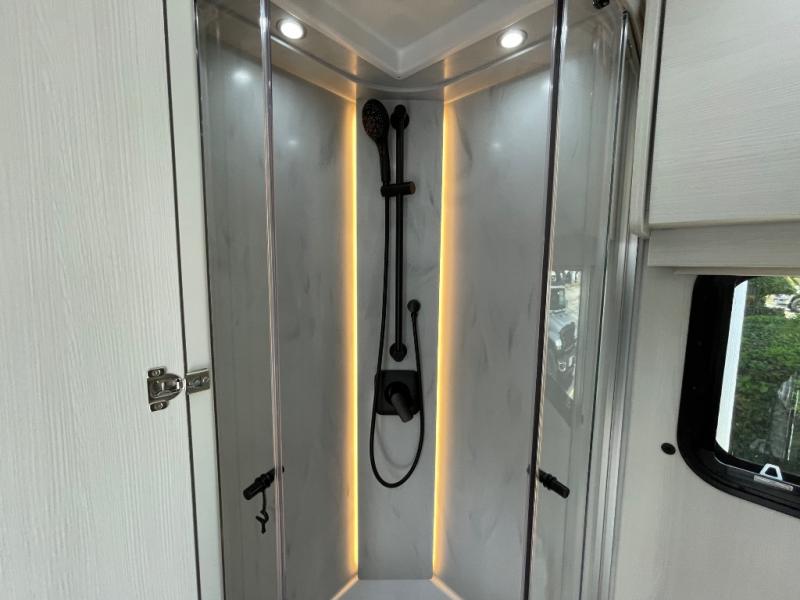 Explore freely in this Pleasure-Way Plateau XLTS Class B+ diesel motorhome! The 500 watt solar panel package helps to keep the 600Ah coach battery bank charged with clean, renewable energy so you can extend your off gridding even further. The widebody construction consists of steel-framed roof, walls, and floor, Sikaflex bonded fiberglass walls, and a one-piece molded fiberglass roof. The full-body paint will turn heads on the highway, and the MBUX multimedia system with 10" touchscreen will keep you entertained the whole time too. The lightweight, durable design of the exterior shower is perfect for rinsing the sand off your feet or your furry friends paws. Get your hands on one today!