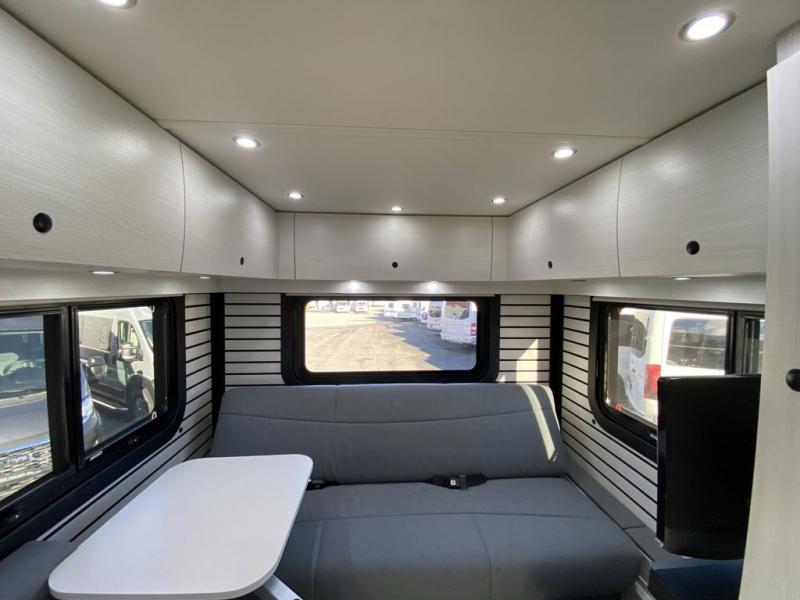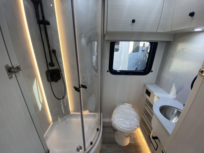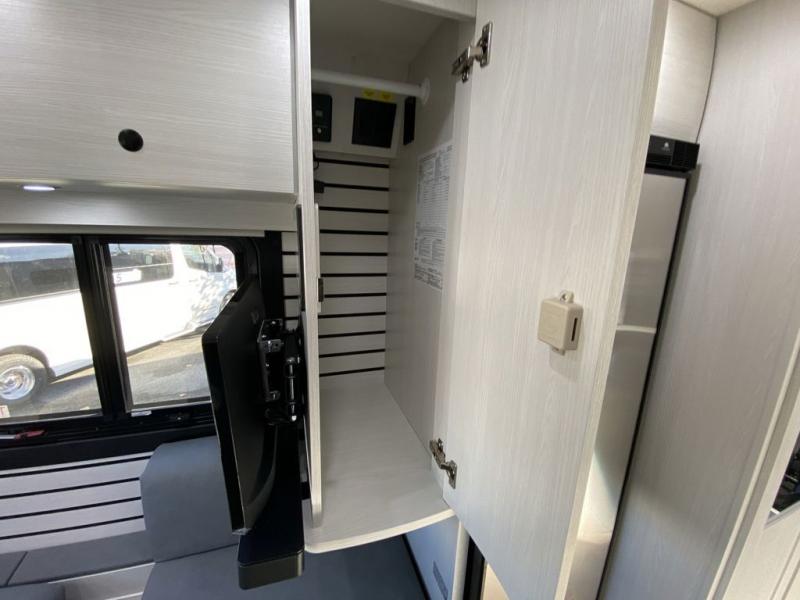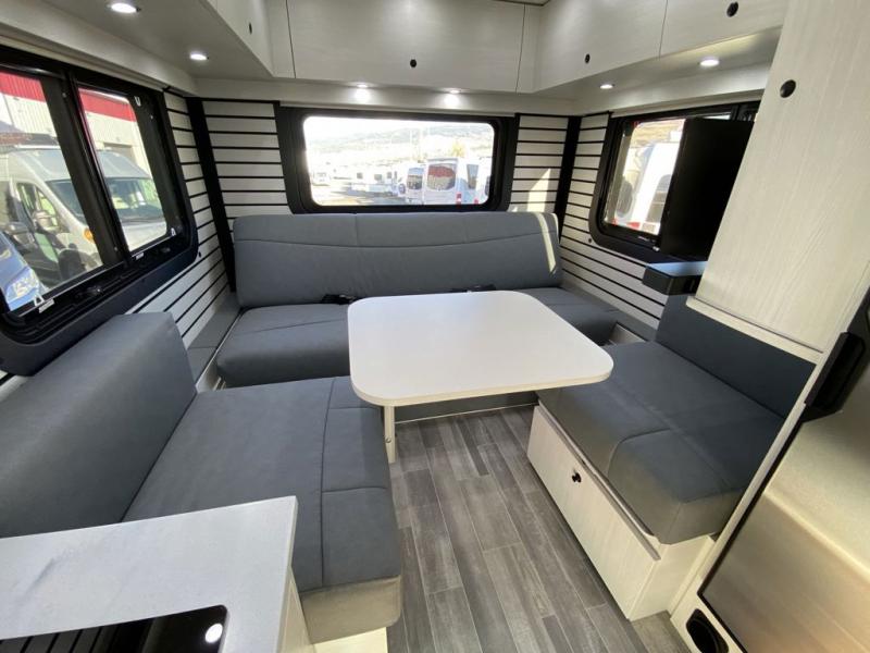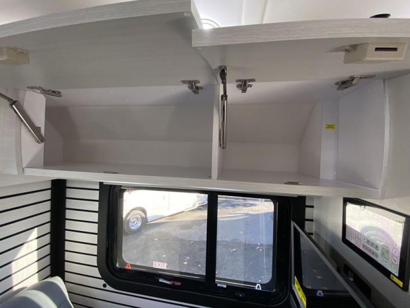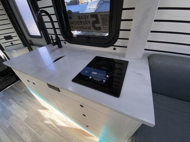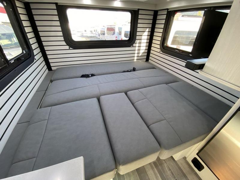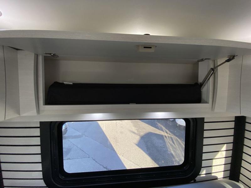 You and your spouse or friend will love touring the country in this comfortable motorhome! After a long day of traveling, freshen up in the full bathroom with the 32" radius shower that is Corian-lined, has a handheld showerhead, a large vanity with storage shelves, and even a towel rack. Prepare your best home cooked meals while on the road with the one burner induction stove, microwave, and 12V 5.3 cu. ft. Norcold refrigerator. Your meals can be enjoyed at the rear electric sofa with Lagun table, and it also transforms into a 75" x 74" queen bed for you to get a good night's rest each night. You even have an inflatable air bed that is fitted for the cab so an extra guest or two can tag along. If mother nature rains on your parade then you can watch your favorite movies on the 24" Smart LED TV with swing out mount and a Winegard Rayzar automatic HDTV antenna!