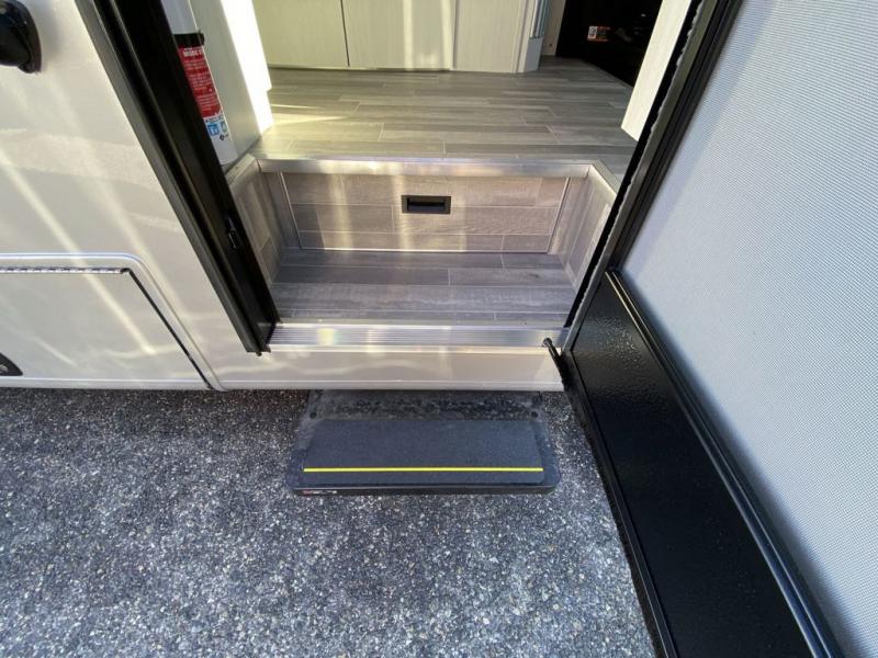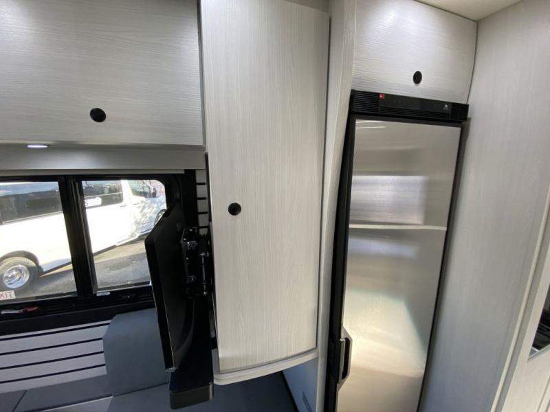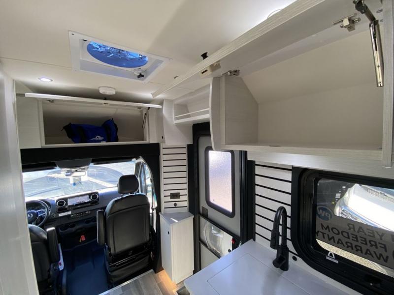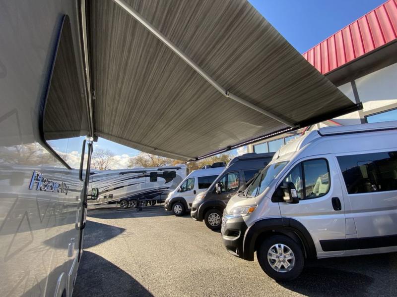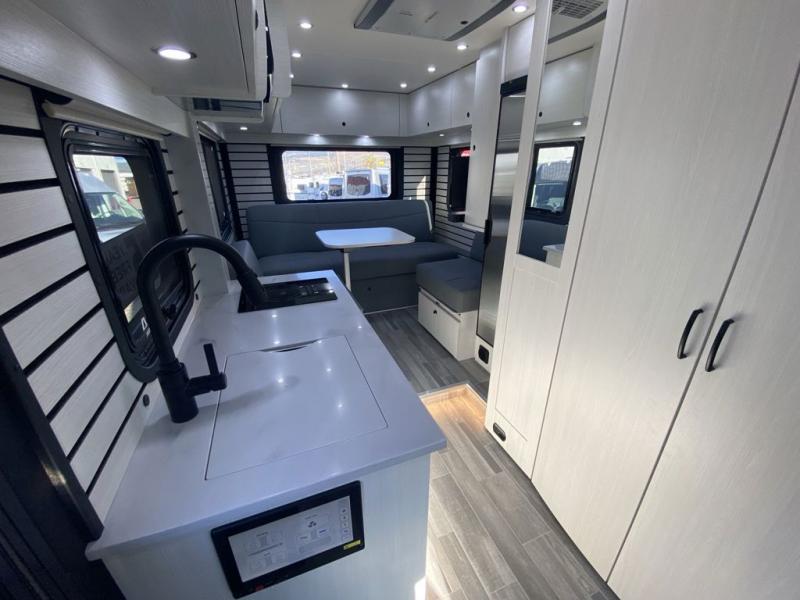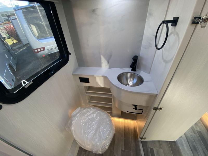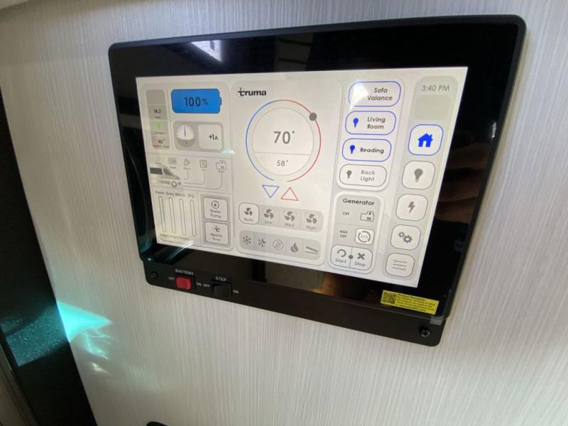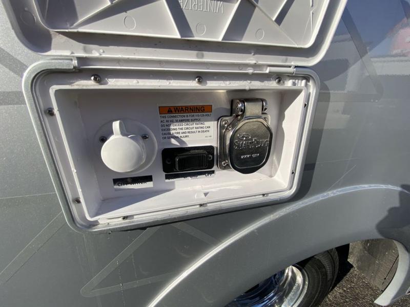 You and your spouse or friend will love touring the country in this comfortable motorhome! After a long day of traveling, freshen up in the full bathroom with the 32" radius shower that is Corian-lined, has a handheld showerhead, a large vanity with storage shelves, and even a towel rack. Prepare your best home cooked meals while on the road with the one burner induction stove, microwave, and 12V 5.3 cu. ft. Norcold refrigerator. Your meals can be enjoyed at the rear electric sofa with Lagun table, and it also transforms into a 75" x 74" queen bed for you to get a good night's rest each night. You even have an inflatable air bed that is fitted for the cab so an extra guest or two can tag along. If mother nature rains on your parade then you can watch your favorite movies on the 24" Smart LED TV with swing out mount and a Winegard Rayzar automatic HDTV antenna!