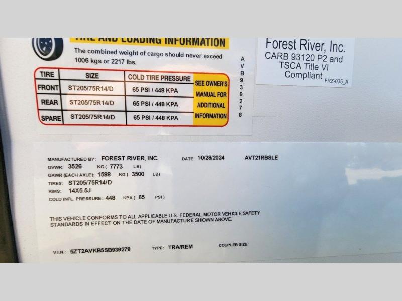 New 2025 Prime Time RV Avenger 21RBSLE Travel Trailer