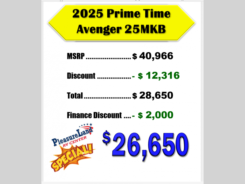 New 2025 Prime Time RV Avenger 25MKB Travel Trailer