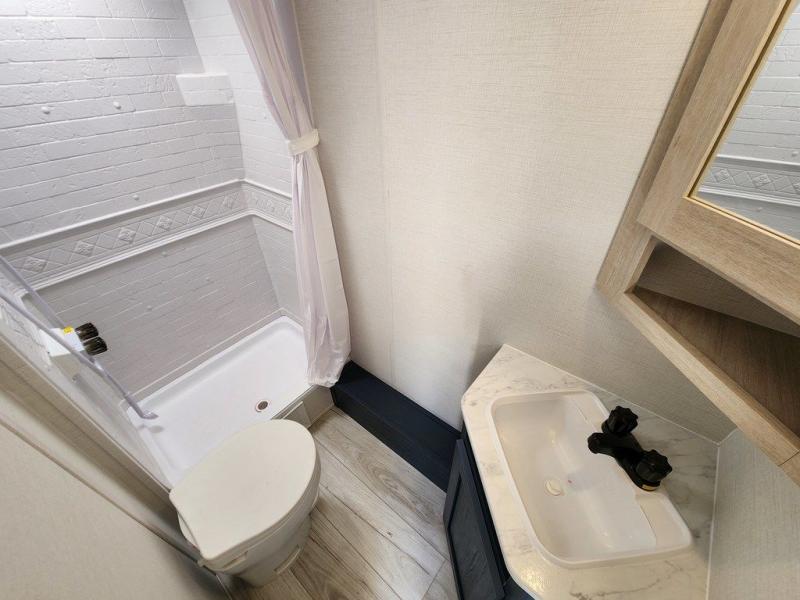 With any Avenger travel trailer by Prime Time, the exterior includes an aerodynamic smooth front metal, a diamond plate front rock guard for protection on the road, and four stabilizer jacks to keep your unit secure. There is a fully walkable roof plus an enclosed and heated underbelly that will help extend your camping season. The interior offers a 15,000 BTU air conditioner for the perfect climate inside, in-floor ducted heat, a systems monitor panel, and a Winegard 360+ antenna with Wi-Fi prep that will give you the option to stay connected as you camp. Each model also includes seamless Carefree Congoleum flooring, kitchen backsplash, shower pans in all models, and pleated nightshades throughout to name a few interior comforts!