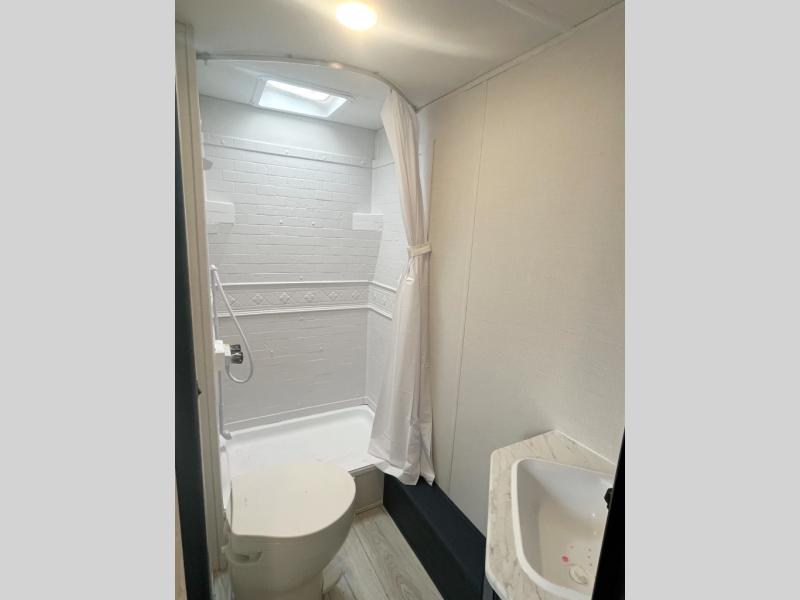 With any Avenger travel trailer by Prime Time, the exterior includes an aerodynamic smooth front metal, a diamond plate front rock guard for protection on the road, and four stabilizer jacks to keep your unit secure. There is a fully walkable roof plus an enclosed and heated underbelly that will help extend your camping season. The interior offers a 15,000 BTU air conditioner for the perfect climate inside, in-floor ducted heat, a systems monitor panel, and a Winegard 360+ antenna with Wi-Fi prep that will give you the option to stay connected as you camp. Each model also includes seamless Carefree Congoleum flooring, kitchen backsplash, shower pans in all models, and pleated nightshades throughout to name a few interior comforts!