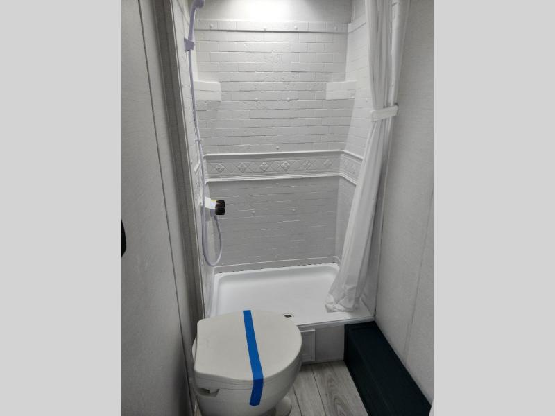 With any Avenger travel trailer by Prime Time, the exterior includes an aerodynamic smooth front metal, a diamond plate front rock guard for protection on the road, and four stabilizer jacks to keep your unit secure. There is a fully walkable roof plus an enclosed and heated underbelly that will help extend your camping season. The interior offers a 15,000 BTU air conditioner for the perfect climate inside, in-floor ducted heat, a systems monitor panel, and a Winegard 360+ antenna with Wi-Fi prep that will give you the option to stay connected as you camp. Each model also includes seamless Carefree Congoleum flooring, kitchen backsplash, shower pans in all models, and pleated nightshades throughout to name a few interior comforts!