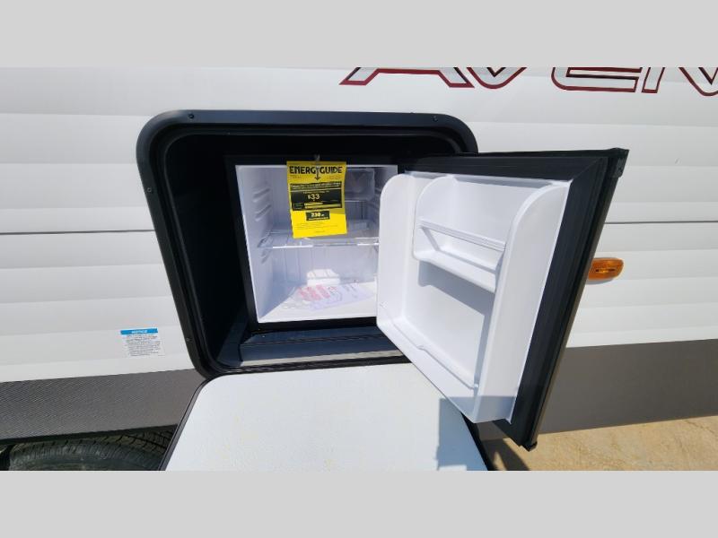With any Avenger travel trailer by Prime Time, the exterior includes an aerodynamic smooth front metal, a diamond plate front rock guard for protection on the road, and four stabilizer jacks to keep your unit secure. There is a fully walkable roof plus an enclosed and heated underbelly that will help extend your camping season. The interior offers a 15,000 BTU air conditioner for the perfect climate inside, in-floor ducted heat, a systems monitor panel, and a Winegard 360+ antenna with Wi-Fi prep that will give you the option to stay connected as you camp. Each model also includes seamless Carefree Congoleum flooring, kitchen backsplash, shower pans in all models, and pleated nightshades throughout to name a few interior comforts!