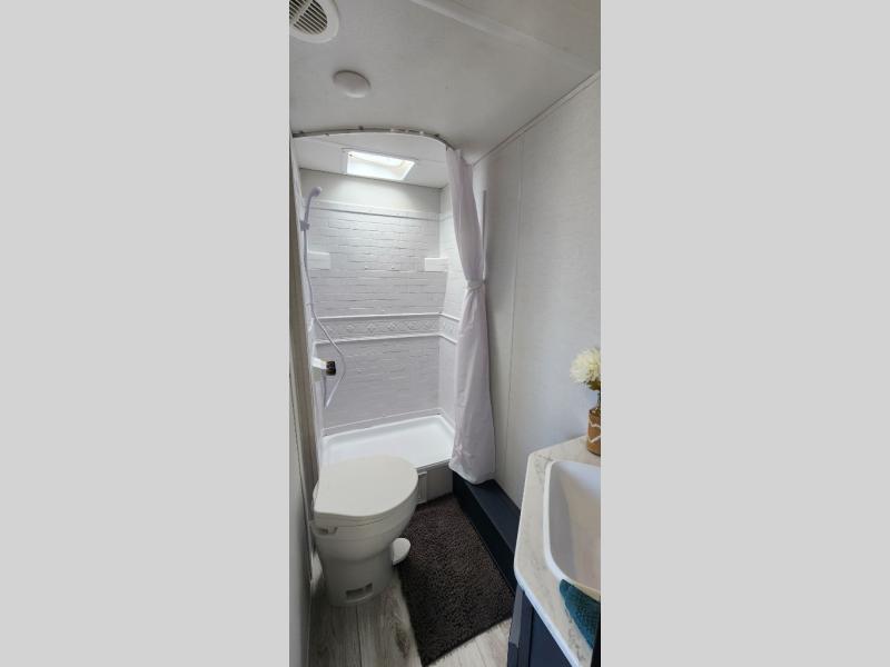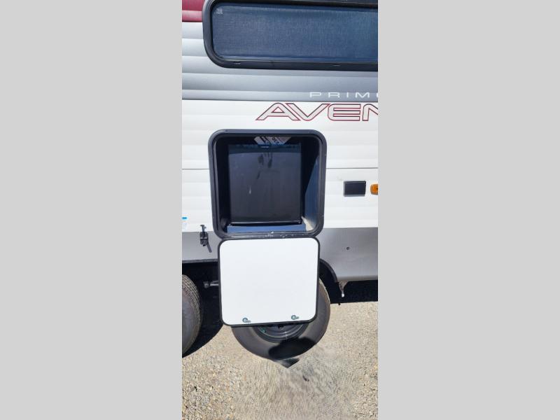 With any Avenger travel trailer by Prime Time, the exterior includes an aerodynamic smooth front metal, a diamond plate front rock guard for protection on the road, and four stabilizer jacks to keep your unit secure. There is a fully walkable roof plus an enclosed and heated underbelly that will help extend your camping season. The interior offers a 15,000 BTU air conditioner for the perfect climate inside, in-floor ducted heat, a systems monitor panel, and a Winegard 360+ antenna with Wi-Fi prep that will give you the option to stay connected as you camp. Each model also includes seamless Carefree Congoleum flooring, kitchen backsplash, shower pans in all models, and pleated nightshades throughout to name a few interior comforts!