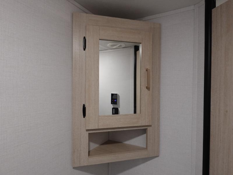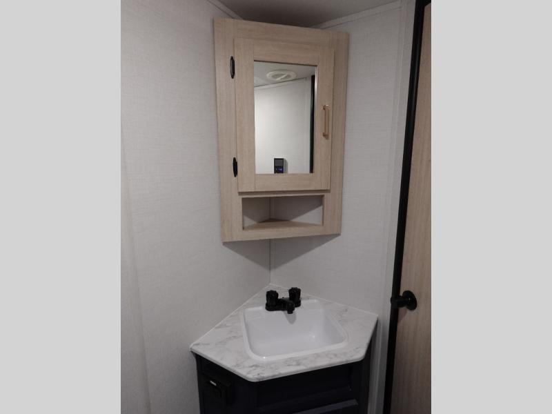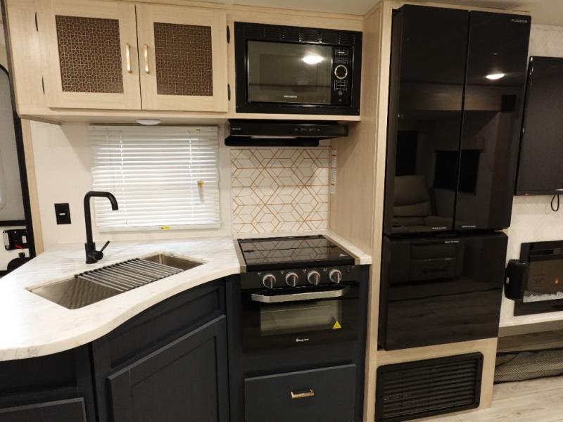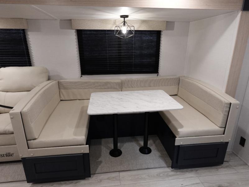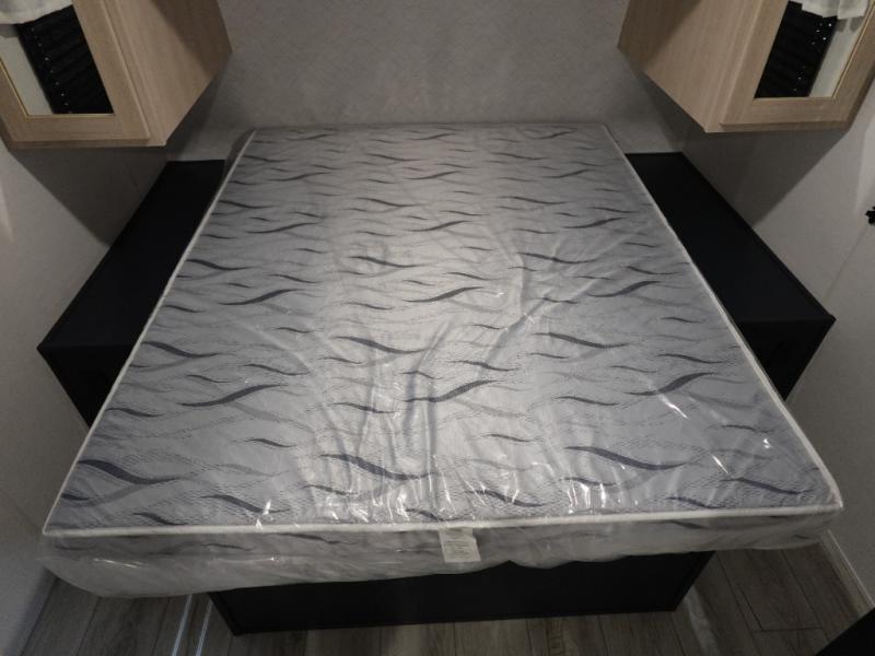 With any Avenger travel trailer by Prime Time, the exterior includes an aerodynamic smooth front metal, a diamond plate front rock guard for protection on the road, and four stabilizer jacks to keep your unit secure. There is a fully walkable roof plus an enclosed and heated underbelly that will help extend your camping season. The interior offers a 15,000 BTU air conditioner for the perfect climate inside, in-floor ducted heat, a systems monitor panel, and a Winegard 360+ antenna with Wi-Fi prep that will give you the option to stay connected as you camp. Each model also includes seamless Carefree Congoleum flooring, kitchen backsplash, shower pans in all models, and pleated nightshades throughout to name a few interior comforts!