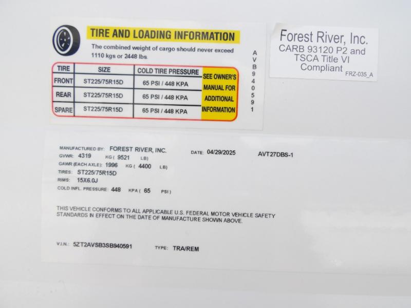 New 2025 Prime Time RV Avenger 27DBS Travel Trailer