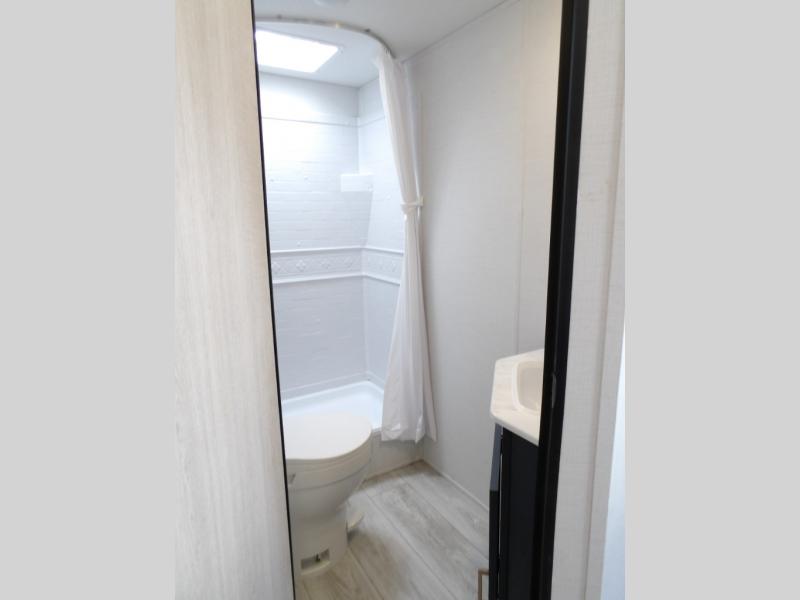 With any Avenger travel trailer by Prime Time, the exterior includes an aerodynamic smooth front metal, a diamond plate front rock guard for protection on the road, and four stabilizer jacks to keep your unit secure. There is a fully walkable roof plus an enclosed and heated underbelly that will help extend your camping season. The interior offers a 15,000 BTU air conditioner for the perfect climate inside, in-floor ducted heat, a systems monitor panel, and a Winegard 360+ antenna with Wi-Fi prep that will give you the option to stay connected as you camp. Each model also includes seamless Carefree Congoleum flooring, kitchen backsplash, shower pans in all models, and pleated nightshades throughout to name a few interior comforts!
