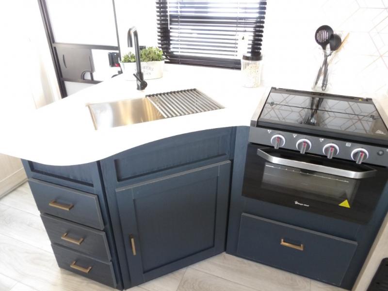 - ELITE PACKAGE - BLACK TANK FLUSH, LP BOTTLE COVER, PREMIUM KITCHEN APPLIANCES AND KITCHEN COUNTERTOP, SHOWER SURROUND, LARGE EXTERIOR GRAB HANDLE, DELUXE GRAPHICS PACKAGE, DESIGNER WINDOW TREATMENTS, UPGRADED WATER HEATER AND SPARE TIRE