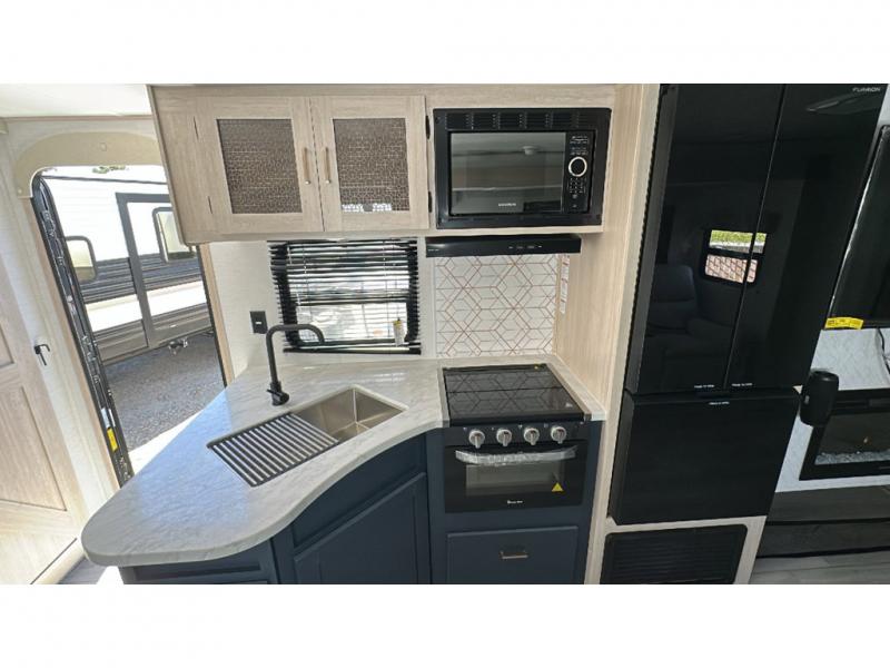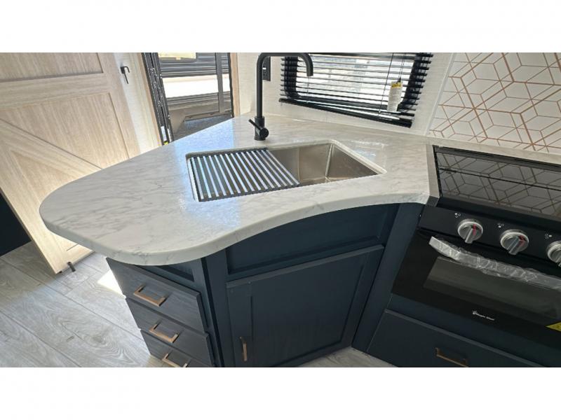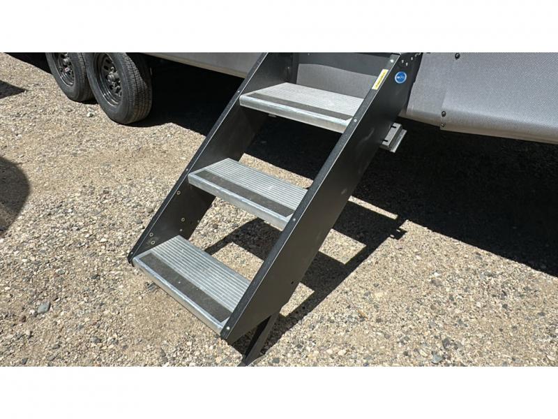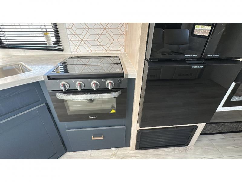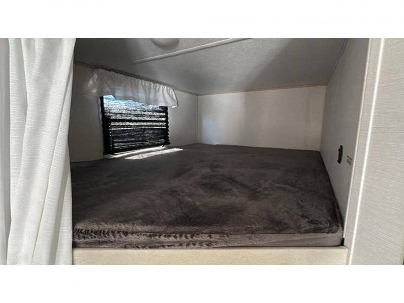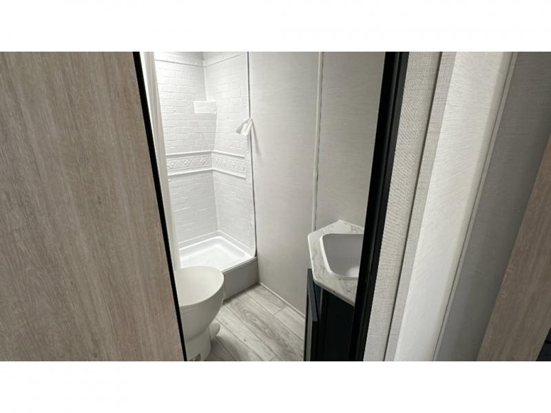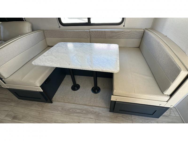 With any Avenger travel trailer by Prime Time, the exterior includes an aerodynamic smooth front metal, a diamond plate front rock guard for protection on the road, and four stabilizer jacks to keep your unit secure. There is a fully walkable roof plus an enclosed and heated underbelly that will help extend your camping season. The interior offers a 15,000 BTU air conditioner for the perfect climate inside, in-floor ducted heat, a systems monitor panel, and a Winegard 360+ antenna with Wi-Fi prep that will give you the option to stay connected as you camp. Each model also includes seamless Carefree Congoleum flooring, kitchen backsplash, shower pans in all models, and pleated nightshades throughout to name a few interior comforts!