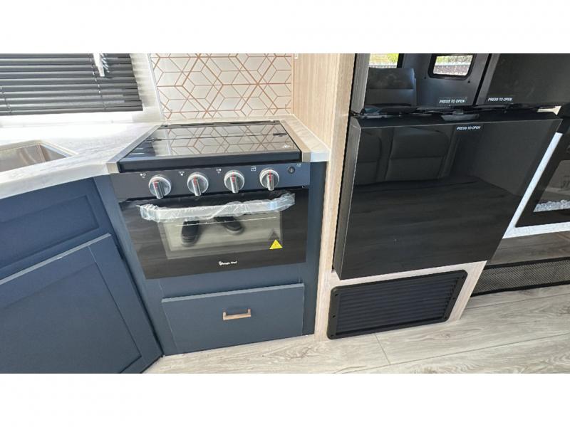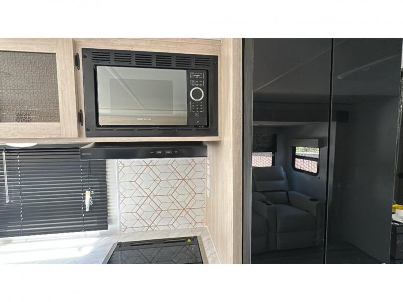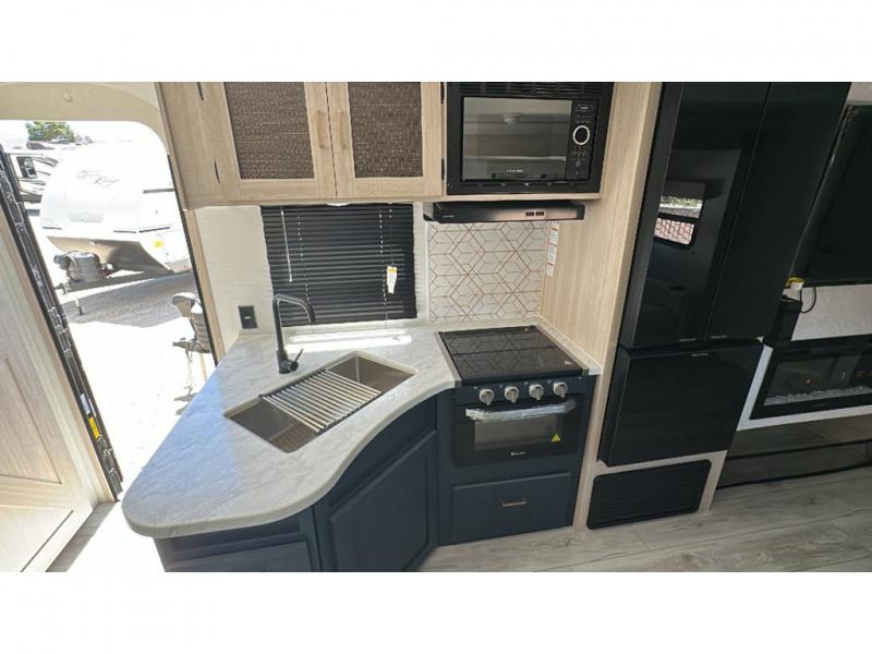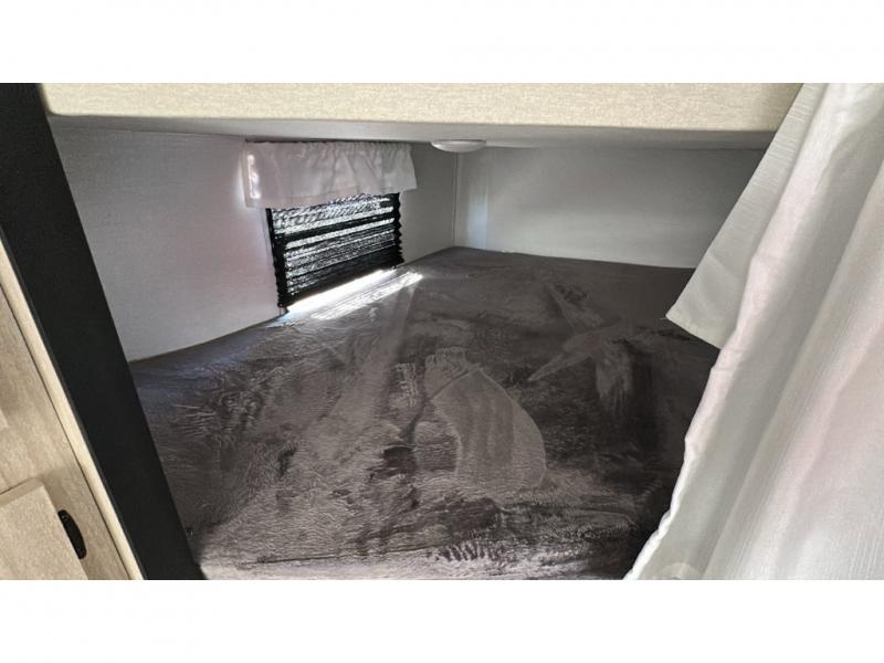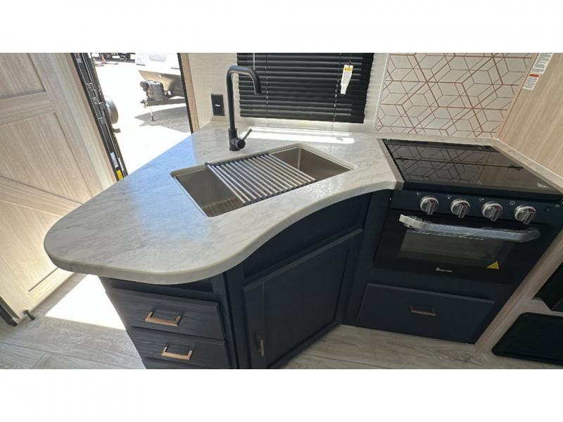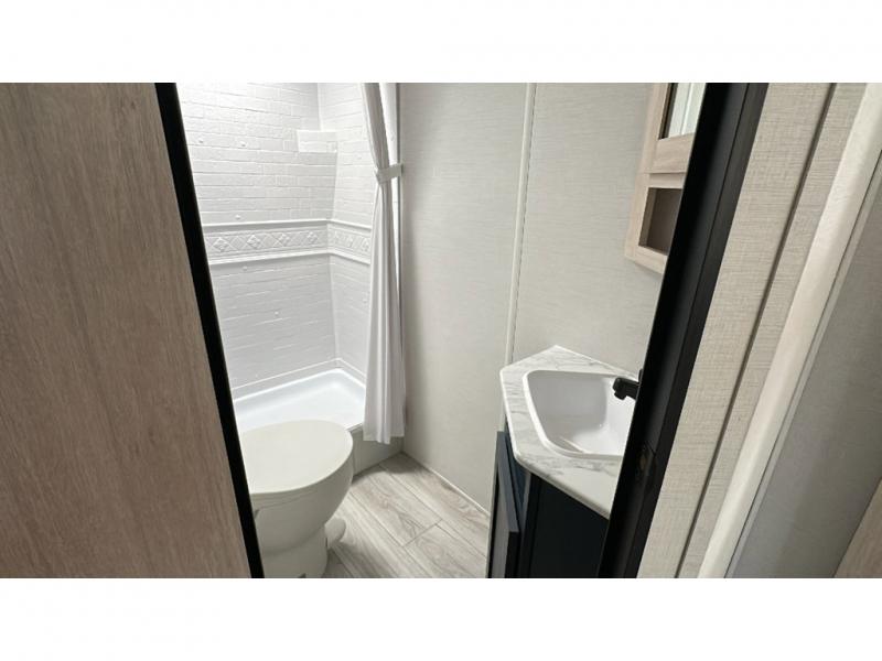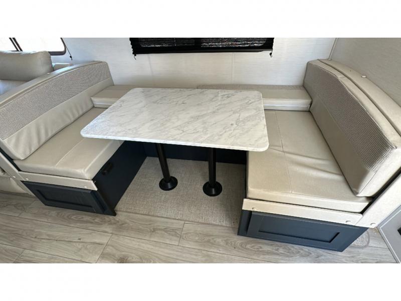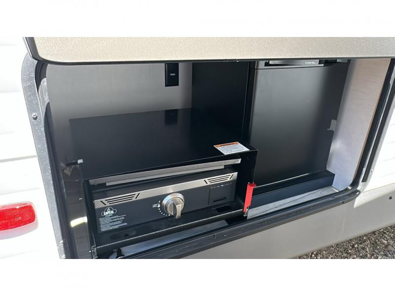 With any Avenger travel trailer by Prime Time, the exterior includes an aerodynamic smooth front metal, a diamond plate front rock guard for protection on the road, and four stabilizer jacks to keep your unit secure. There is a fully walkable roof plus an enclosed and heated underbelly that will help extend your camping season. The interior offers a 15,000 BTU air conditioner for the perfect climate inside, in-floor ducted heat, a systems monitor panel, and a Winegard 360+ antenna with Wi-Fi prep that will give you the option to stay connected as you camp. Each model also includes seamless Carefree Congoleum flooring, kitchen backsplash, shower pans in all models, and pleated nightshades throughout to name a few interior comforts!