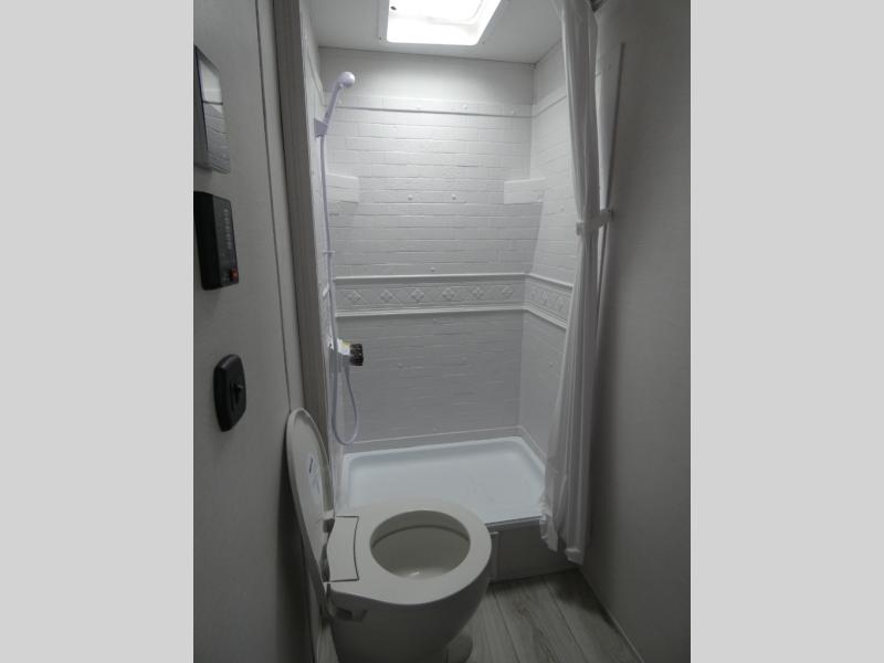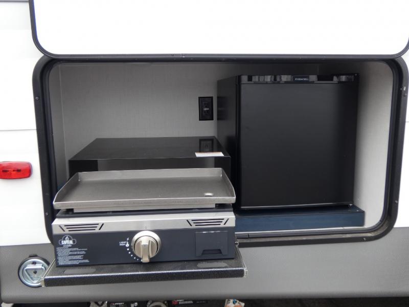 With any Avenger travel trailer by Prime Time, the exterior includes an aerodynamic smooth front metal, a diamond plate front rock guard for protection on the road, and four stabilizer jacks to keep your unit secure. There is a fully walkable roof plus an enclosed and heated underbelly that will help extend your camping season. The interior offers a 15,000 BTU air conditioner for the perfect climate inside, in-floor ducted heat, a systems monitor panel, and a Winegard 360+ antenna with Wi-Fi prep that will give you the option to stay connected as you camp. Each model also includes seamless Carefree Congoleum flooring, kitchen backsplash, shower pans in all models, and pleated nightshades throughout to name a few interior comforts!
