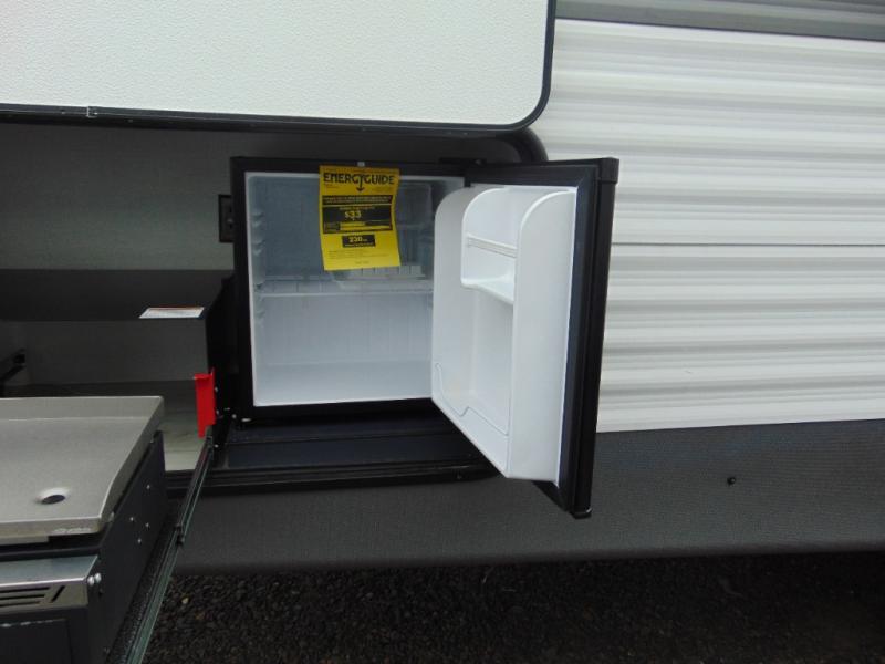 Outside, the Avenger 27RBS stands out with its durable construction and practical features, including a large awning for shaded outdoor living, exterior storage compartments, and easy hookups for water, electricity, and sewer. Every detail is designed to enhance your travel experience, making it easy to focus on fun and adventure.