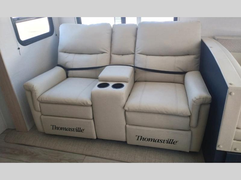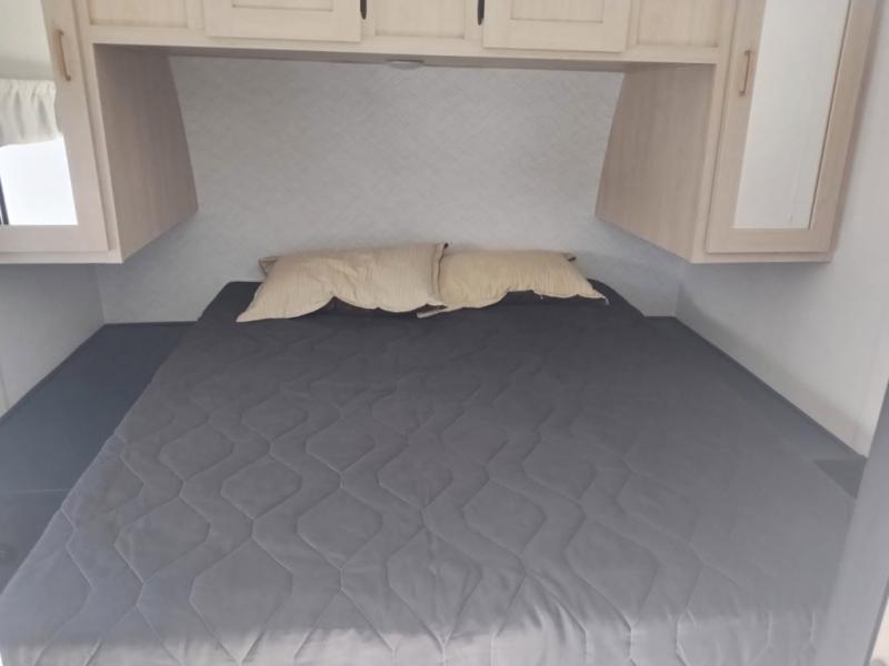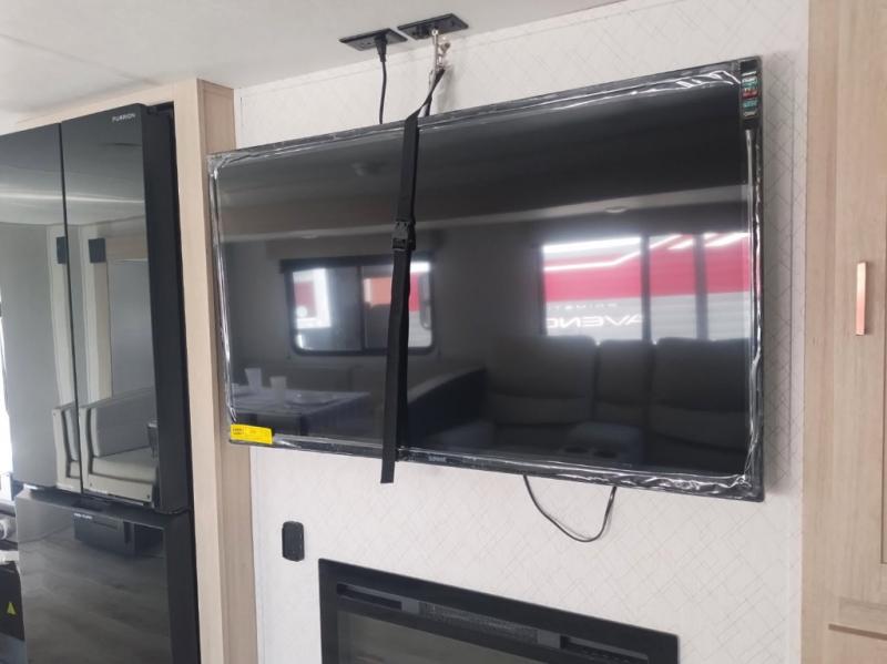 With any Avenger travel trailer by Prime Time, the exterior includes an aerodynamic smooth front metal, a diamond plate front rock guard for protection on the road, and four stabilizer jacks to keep your unit secure. There is a fully walkable roof plus an enclosed and heated underbelly that will help extend your camping season. The interior offers a 15,000 BTU air conditioner for the perfect climate inside, in-floor ducted heat, a systems monitor panel, and a Winegard 360+ antenna with Wi-Fi prep that will give you the option to stay connected as you camp. Each model also includes seamless Carefree Congoleum flooring, kitchen backsplash, shower pans in all models, and pleated nightshades throughout to name a few interior comforts!