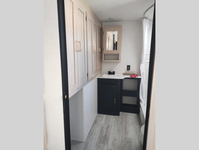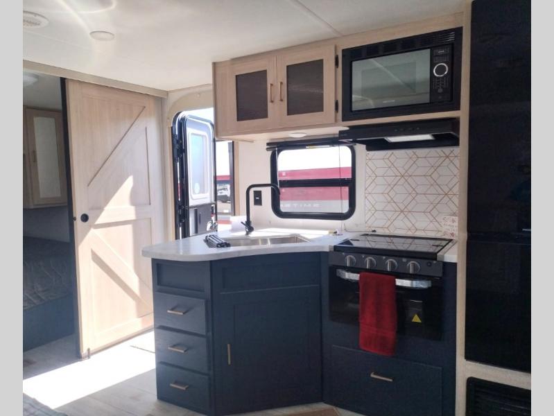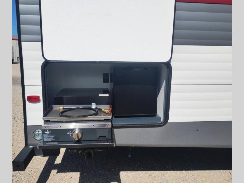 This Prime Time RV Avenger travel trailer provides several convenient and "must have" features that will check all the boxes! The three burner cooktop, 17" oven, and electric microwave will let you prepare meals each day, plus there is an outside kitchen to cook outdoors when the weather is nice. Once you are ready to turn in for the night, the walk-around queen bed in the front bedroom will deliver comfort while you sleep and the space saving sliding doors offer privacy. And any guests you may have can sleep on the U-shaped dinette and sofa within the large slide out! The main reason you might have wanted this trailer is the spacious rear bathroom with two linen closets and plenty of space to get ready each morning.