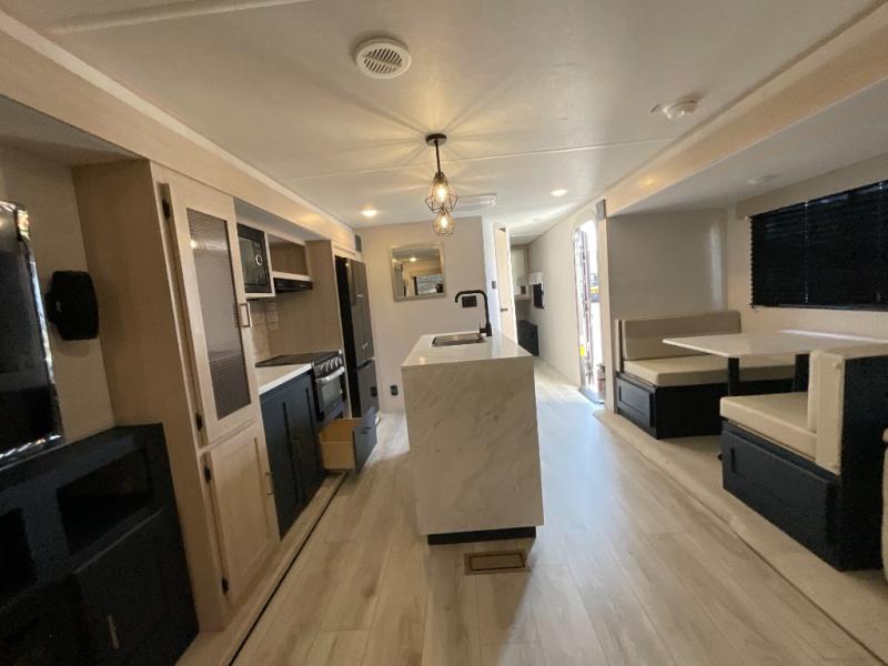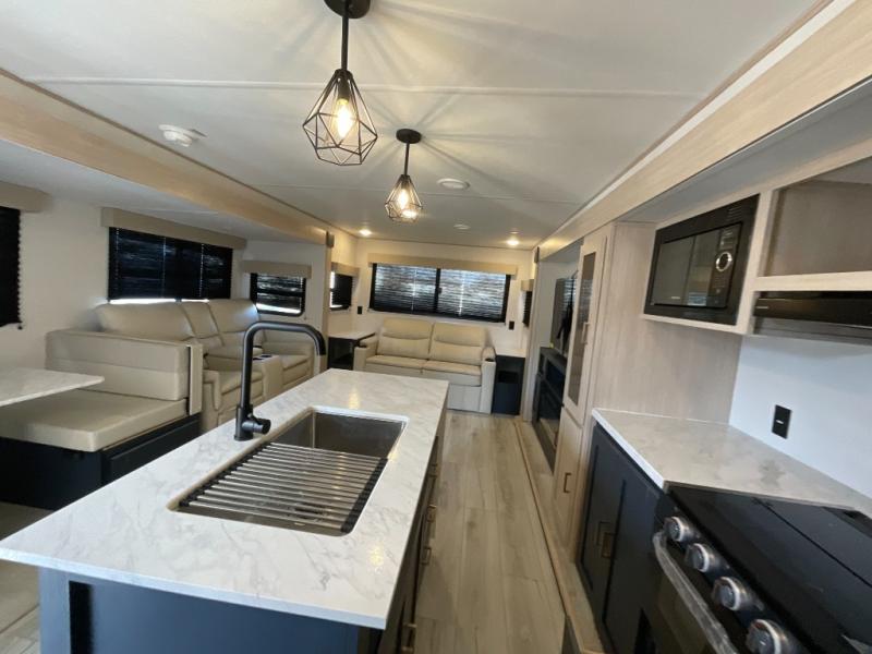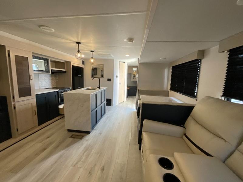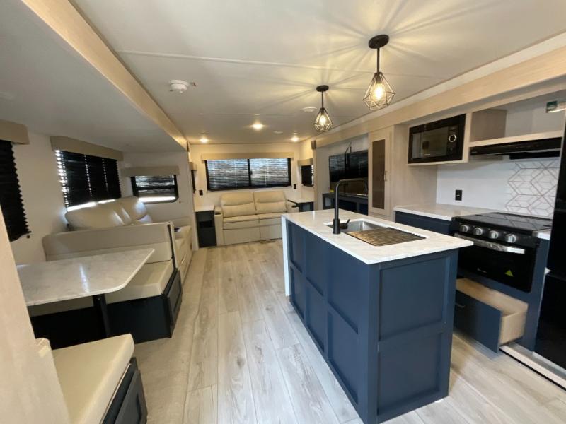 Equipped with a full-sized power awning and outdoor speakers, the Avenger 28REI is made to enhance your outdoor experience. Set up your camp, grab a cold drink, and enjoy your surroundings like never before! -