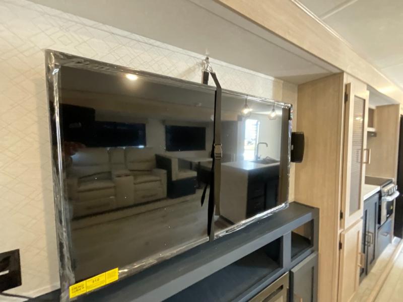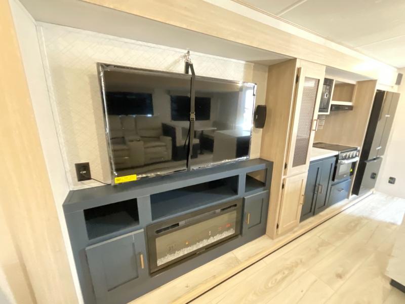 Enhance your experience with the optional high-definition entertainment system, featuring a larger TV, upgraded soundbar, and even satellite TV capabilities. Perfect for rainy days or movie nights under the stars. -